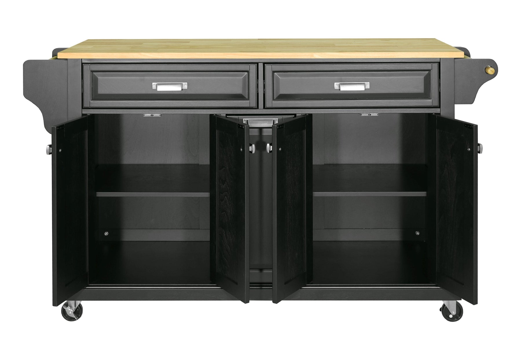 A: Yes, the casters are equipped with locks to secure the island in place when needed, ensuring stability during use.
