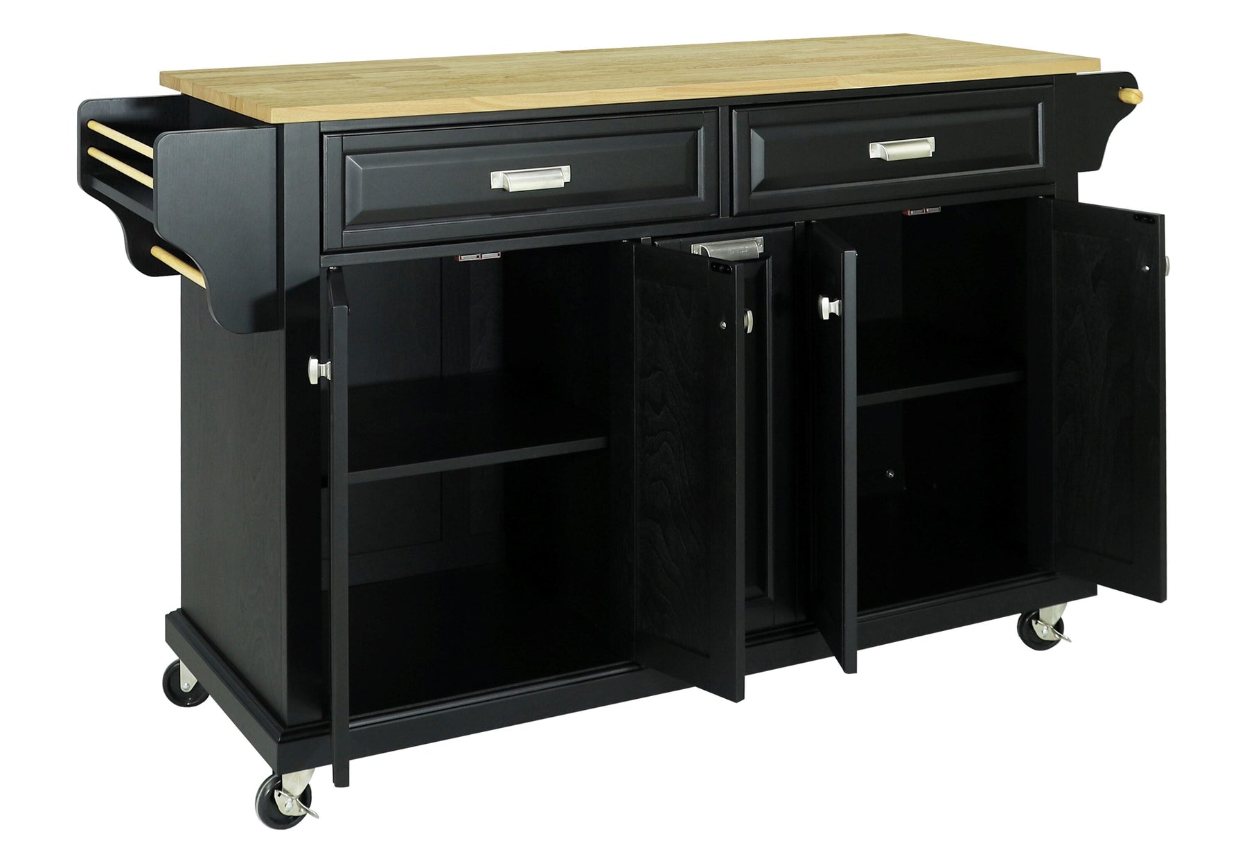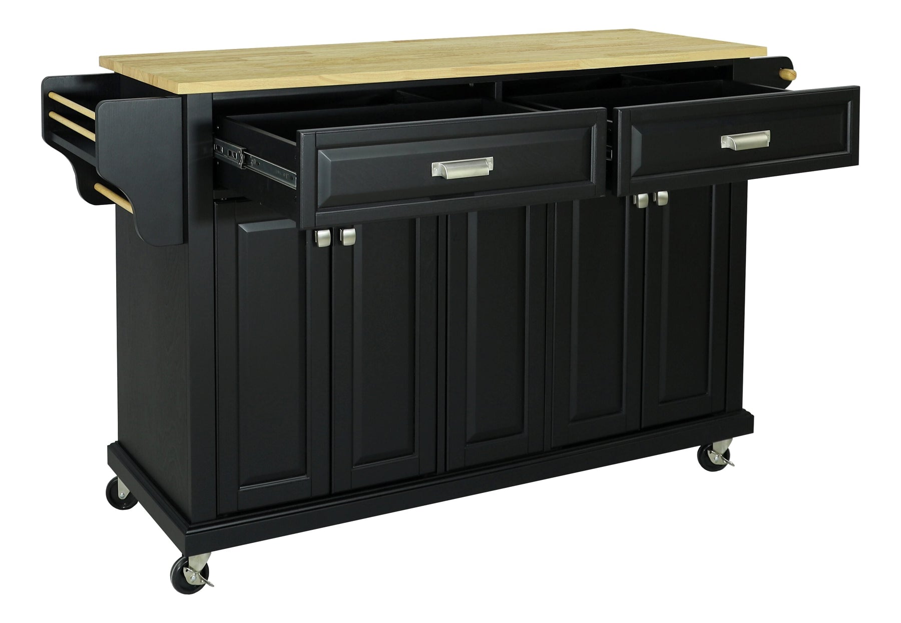 CESICIA Black Wood Base with Wood Top Rolling Kitchen Island (18-in x 51-in x 36-in)