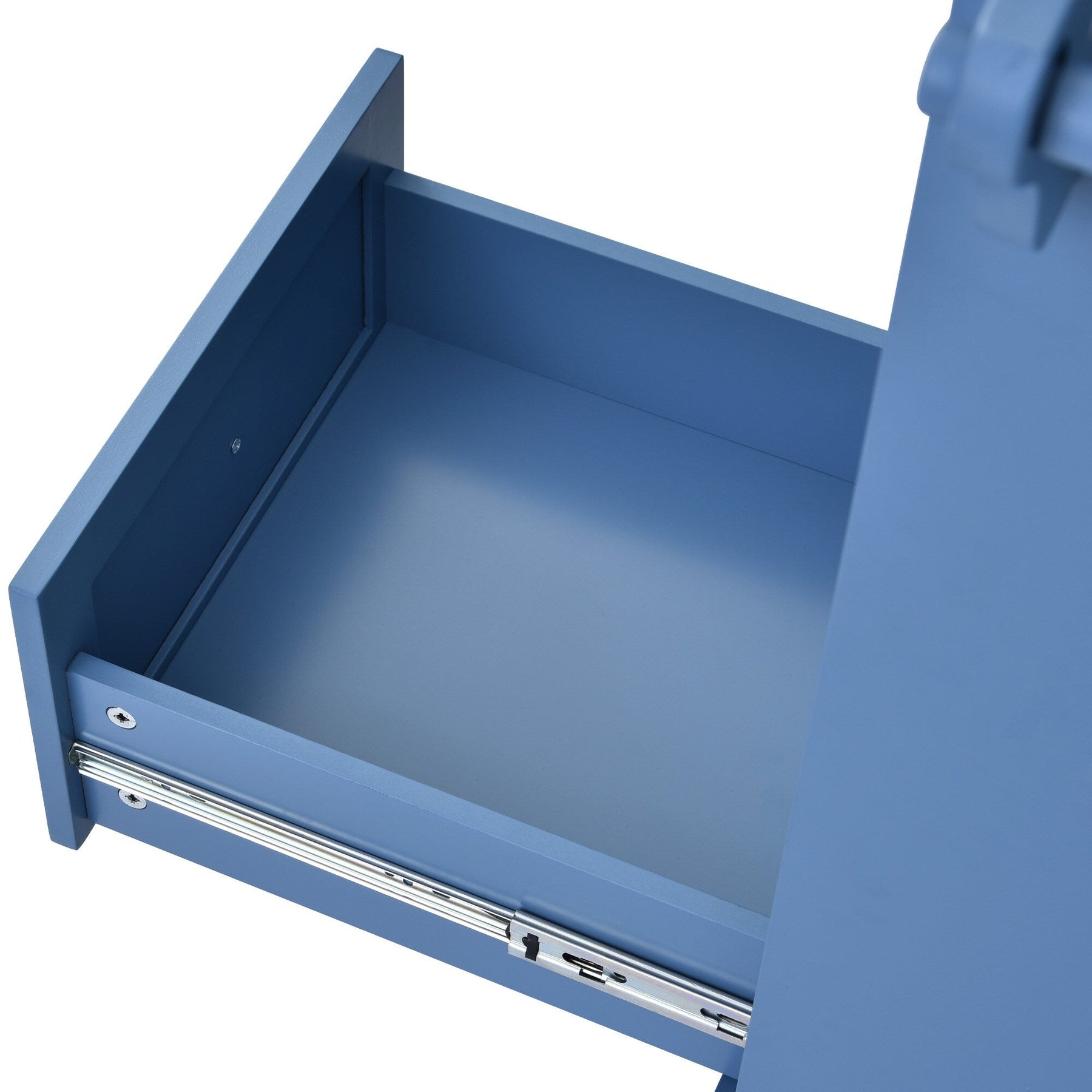 CESICIA Blue Wood Base with Wood Top Rolling Kitchen Island (18.1-in x 52.8-in x 36.2-in)