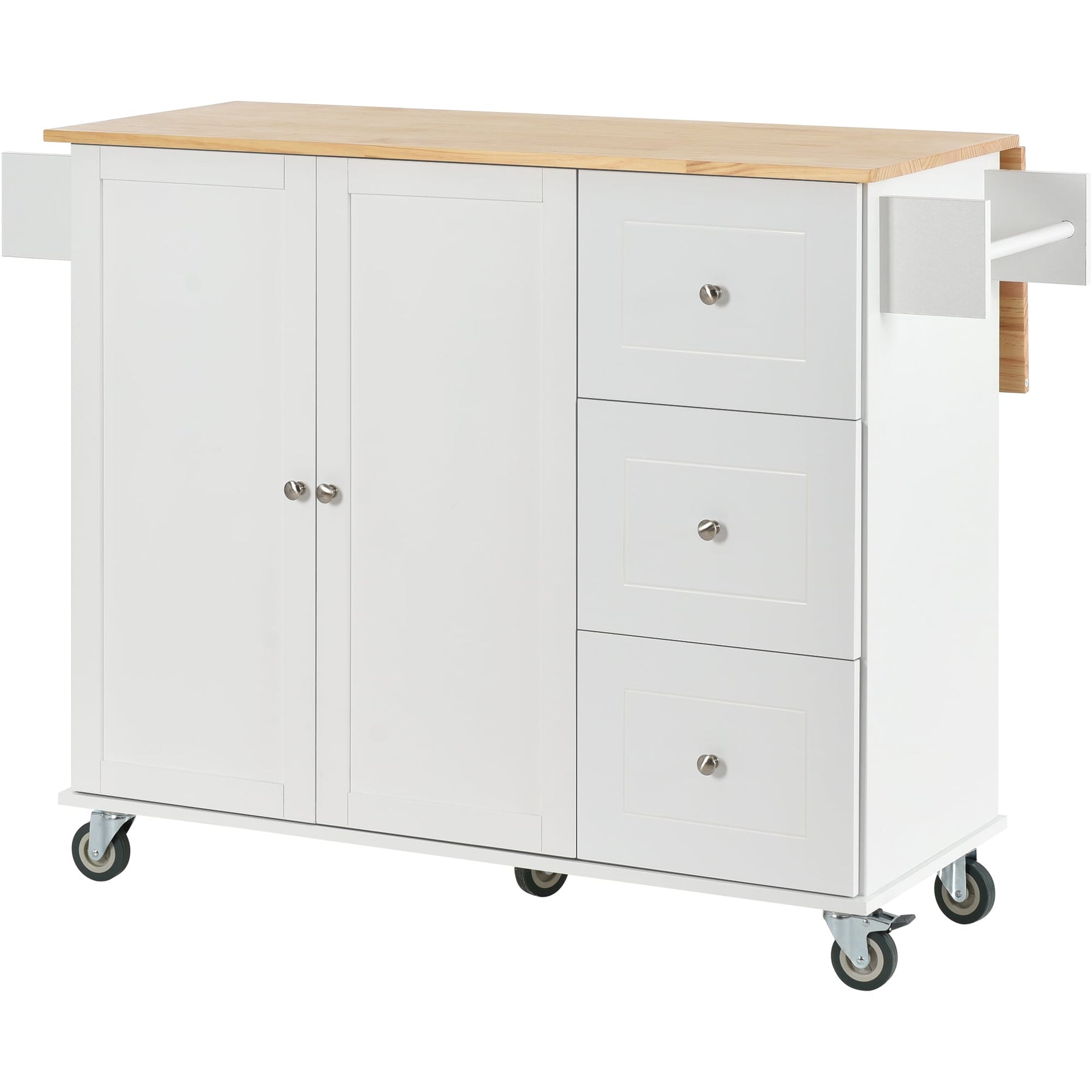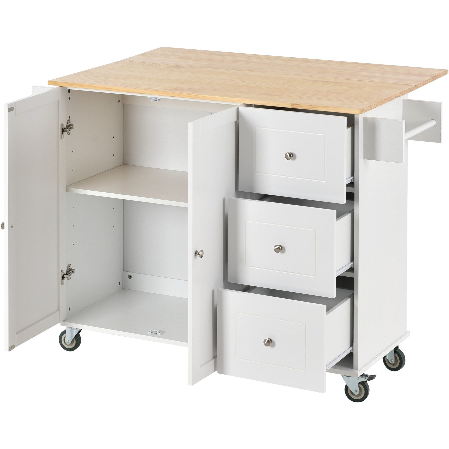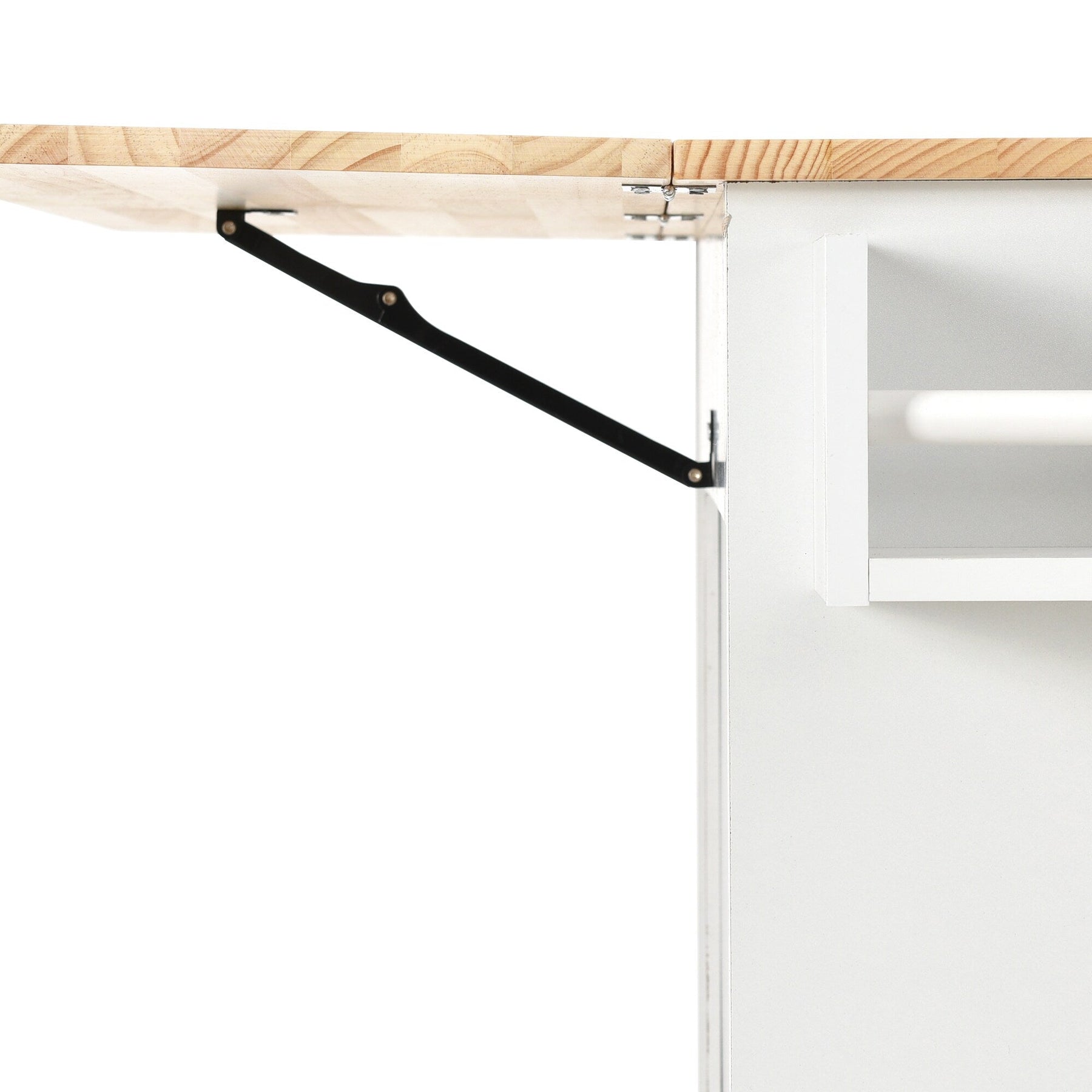 Elevate your kitchen with the CESICIA White Wood Rolling Kitchen Island, a multifunctional piece designed for both style and practicality. Featuring a solid wood top and a spacious white wood base, this rolling island provides abundant storage and a convenient drop leaf breakfast bar, making meal prep and casual dining a breeze.