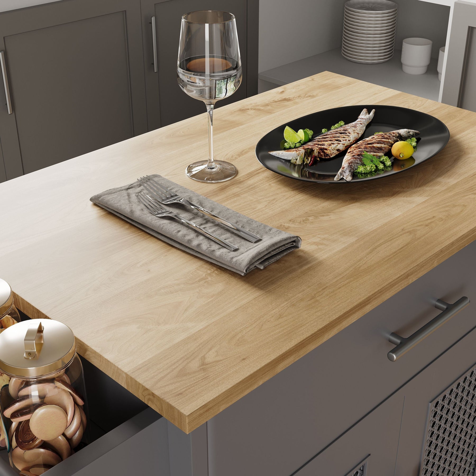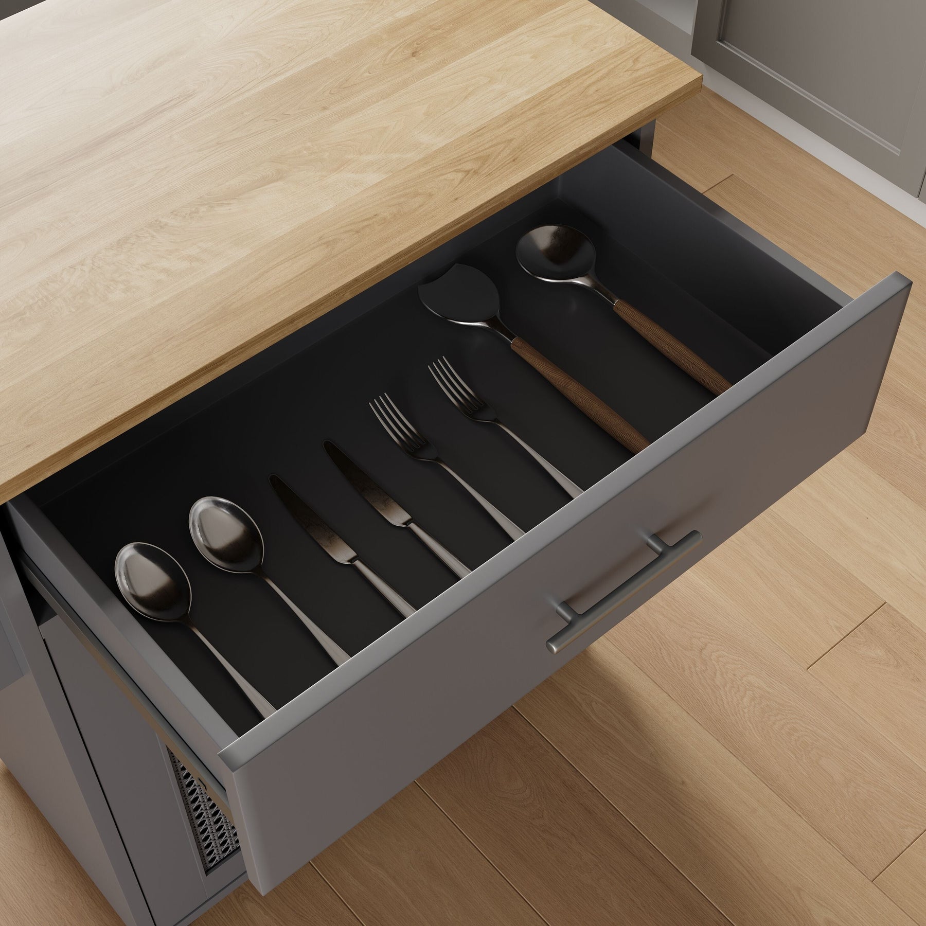 • Smart Storage: Cabinet and drawer space ideal for utensils, small appliances, and cookware.