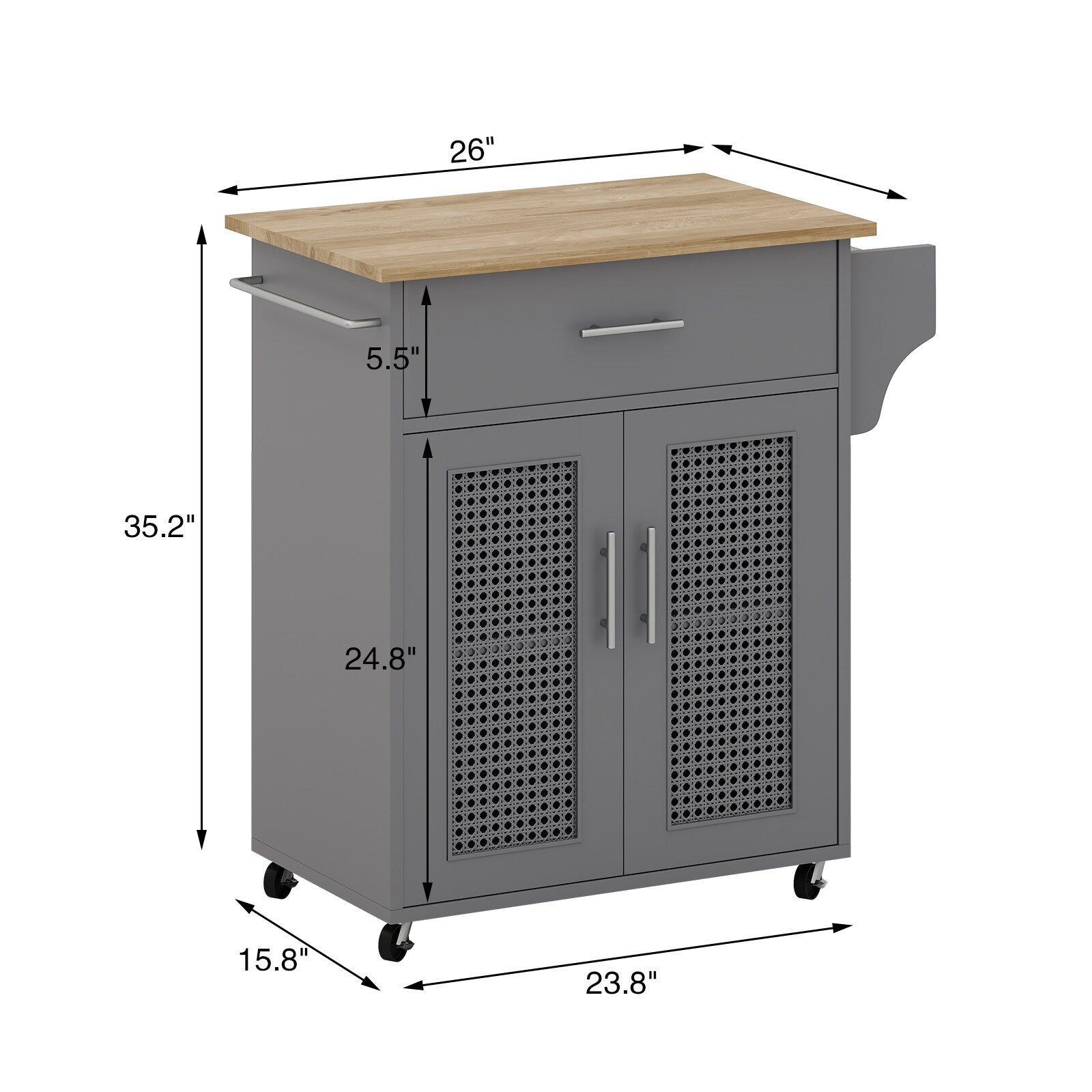 Jarenie Gray Mdf Base with Mdf Wood Top Rolling Kitchen Island (15.8-in x 26-in x 35.2-in)
