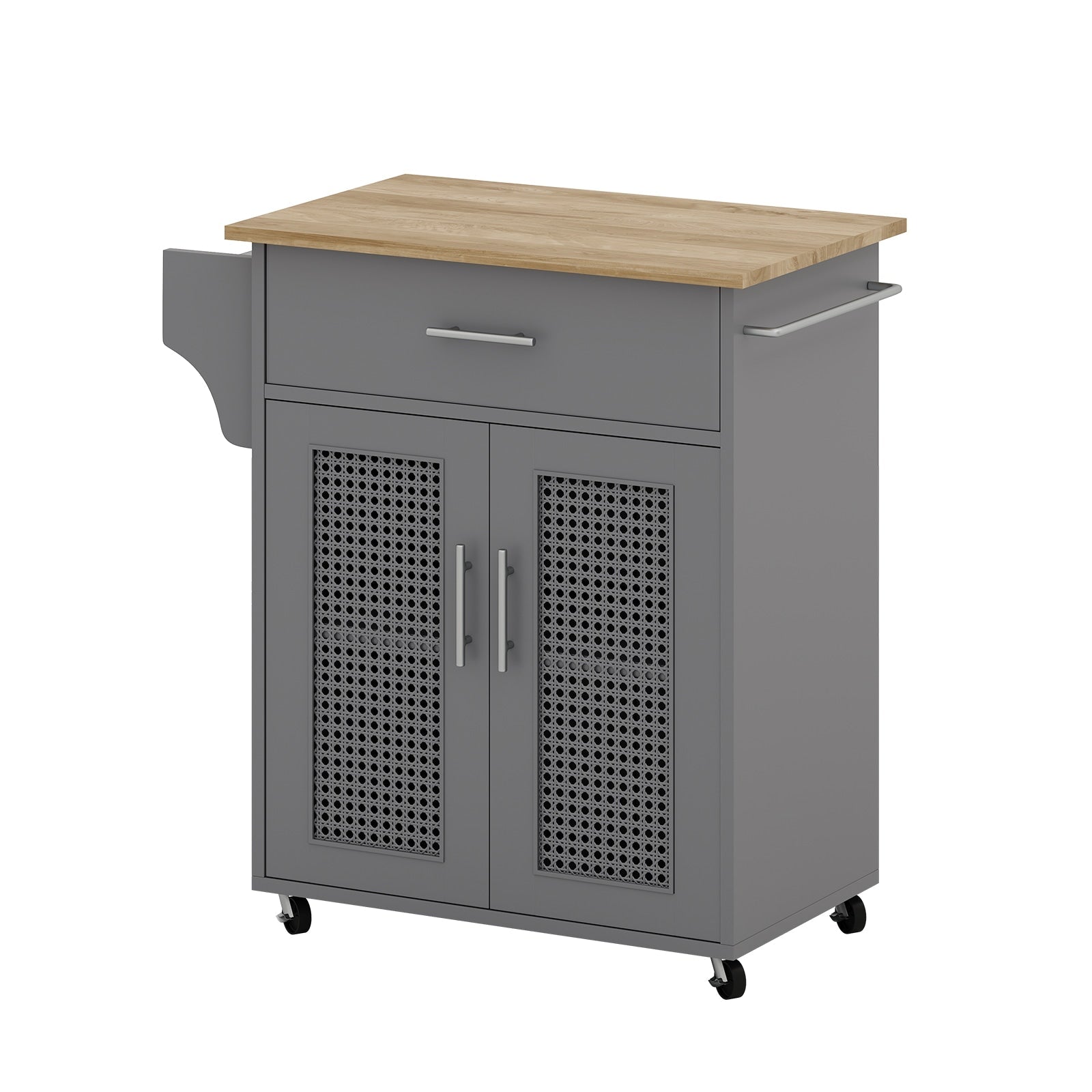 Rolling MDF Kitchen Island with Gray Finish