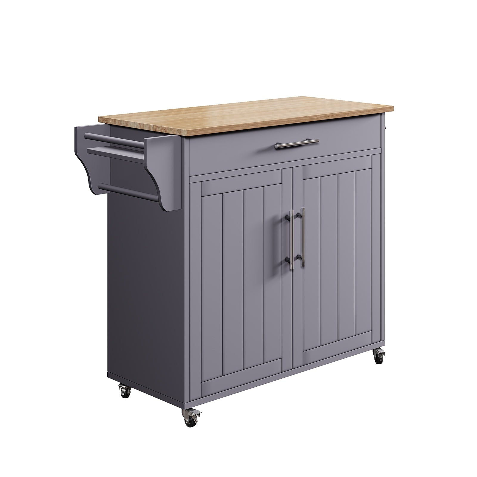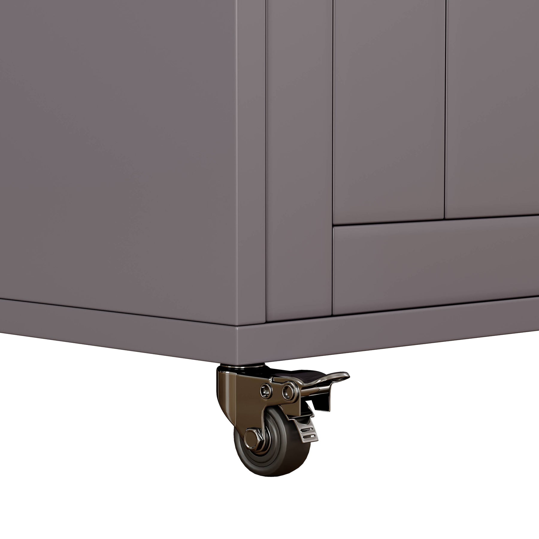 The Jarenie Gray MDF Rolling Kitchen Island is more than just a functional piece; it transforms your kitchen into a culinary hub. Its minimalist gray finish and clean lines offer a perfect blend of form and function, ideal for modern interiors. Stylishly store your essentials in its spacious cabinetry, and let the rolling feature bring your kitchen cape to life through easy repositioning. The island's design exudes an air of sophisticated elegance, making it an indispensable asset in creating a luxurious yet functional kitchen space.