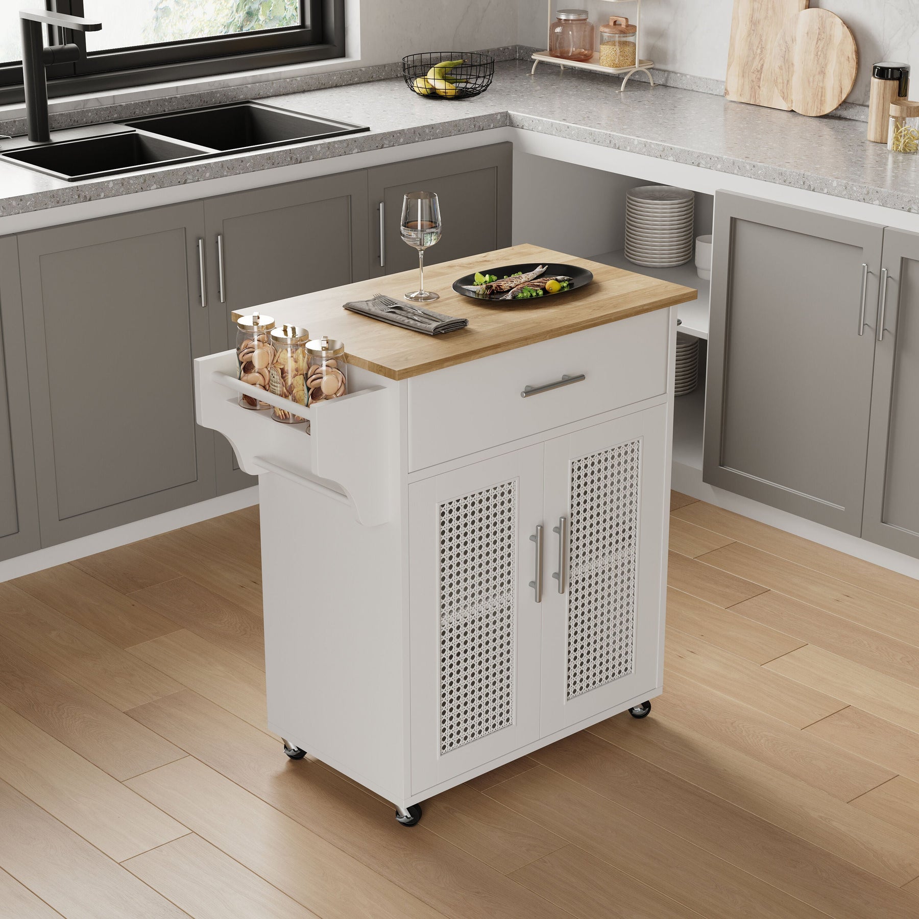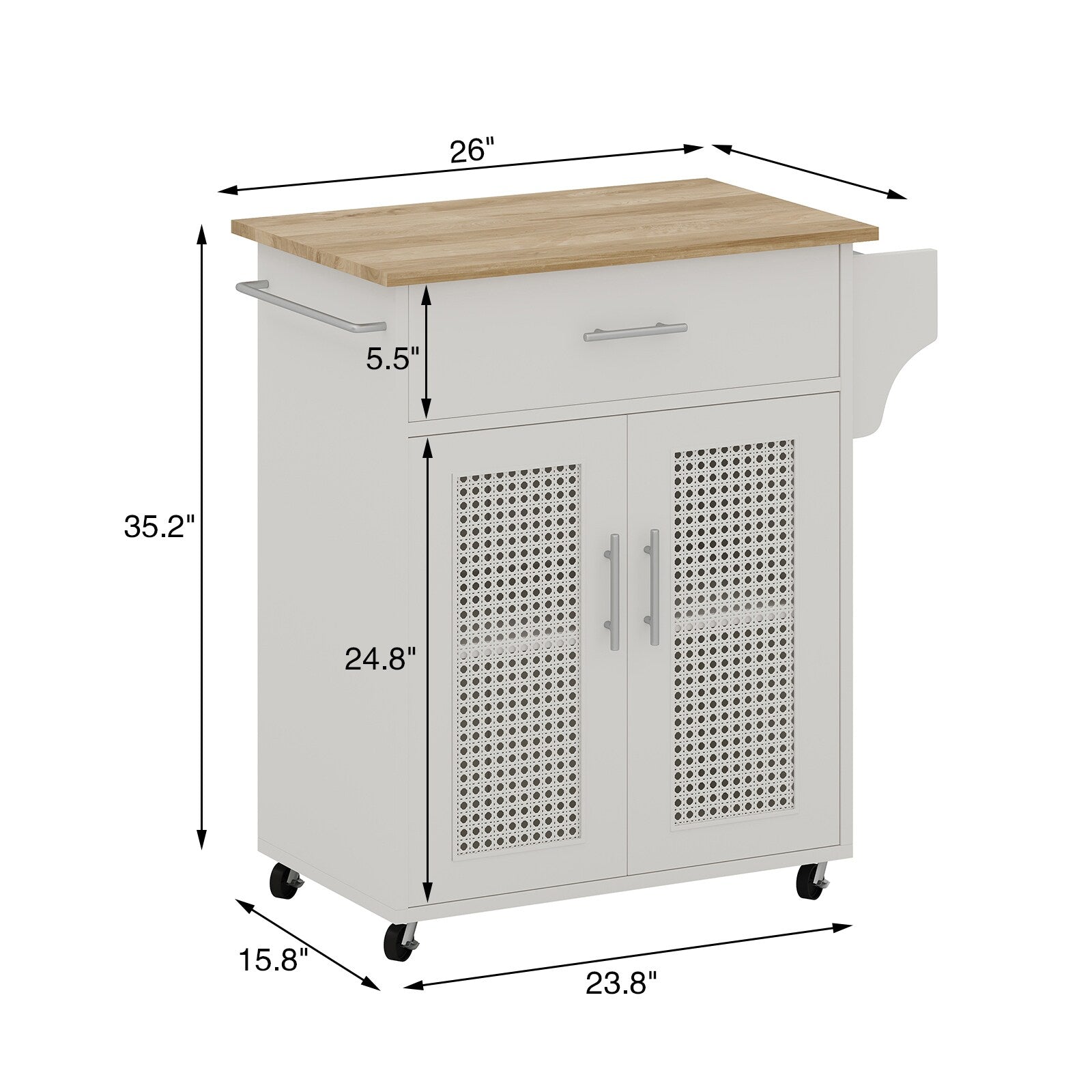 Jarenie White Mdf Base with Composite Wood Top Rolling Kitchen Island (18-in x 26.1-in x 35.2-in)