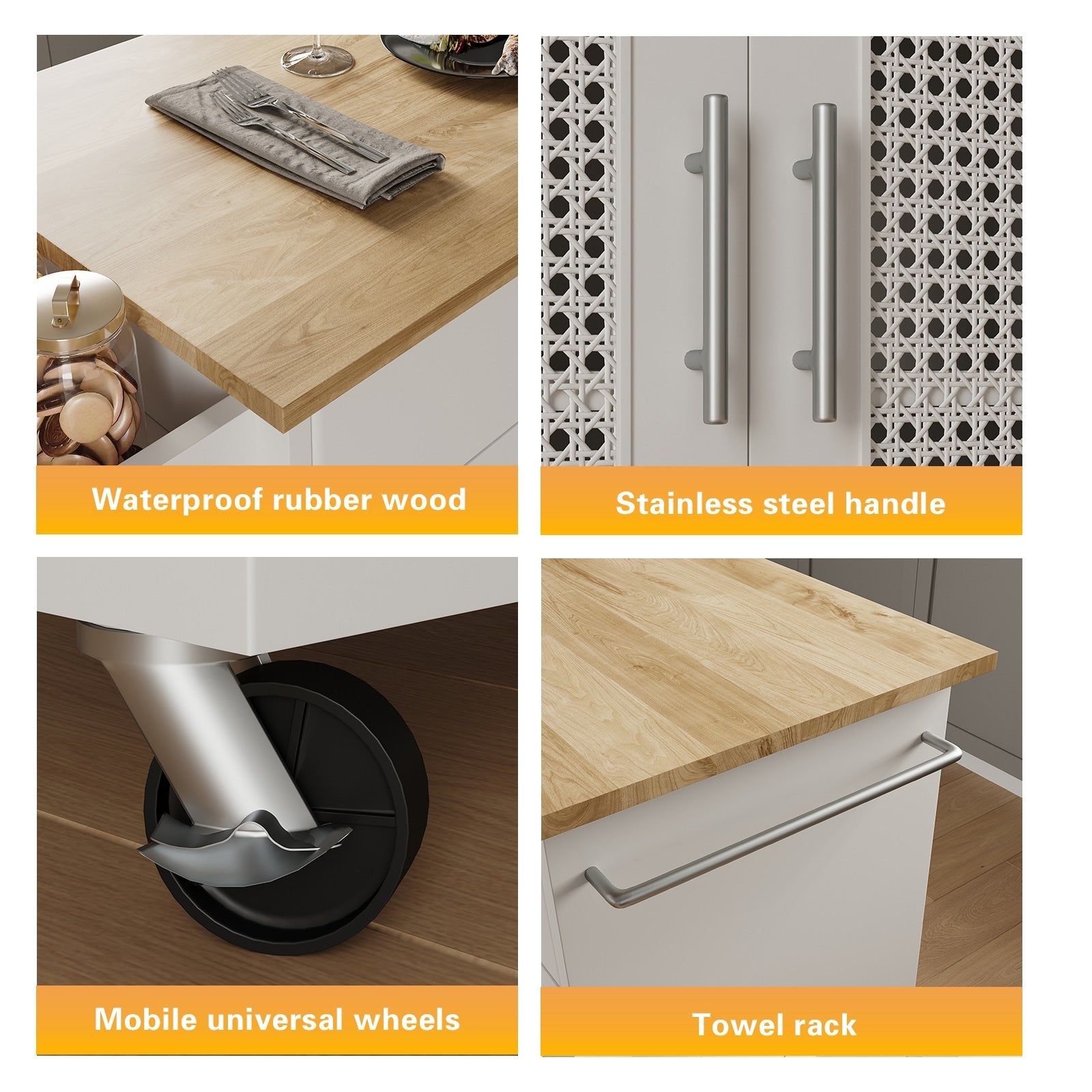 - Versatile Functionality: Features a drawer for utensils and dinnerware and a storage cabinet with rattan doors for organized storage.