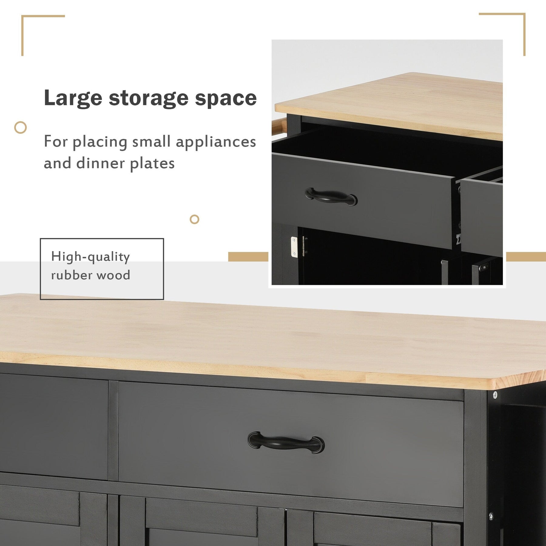 - Ample Storage: Includes four-door cabinets, two drawers, and adjustable shelves for various kitchen essentials.