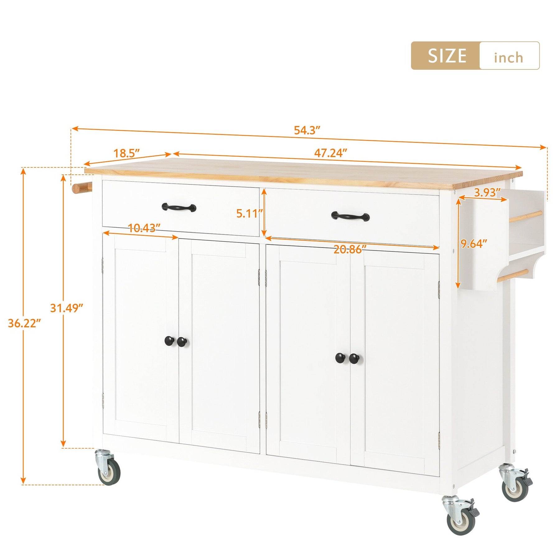 Miki Shinly White Mdf Base with Wood Top Rolling Kitchen Island (18.5-in x 54.33-in x 36.22-in)