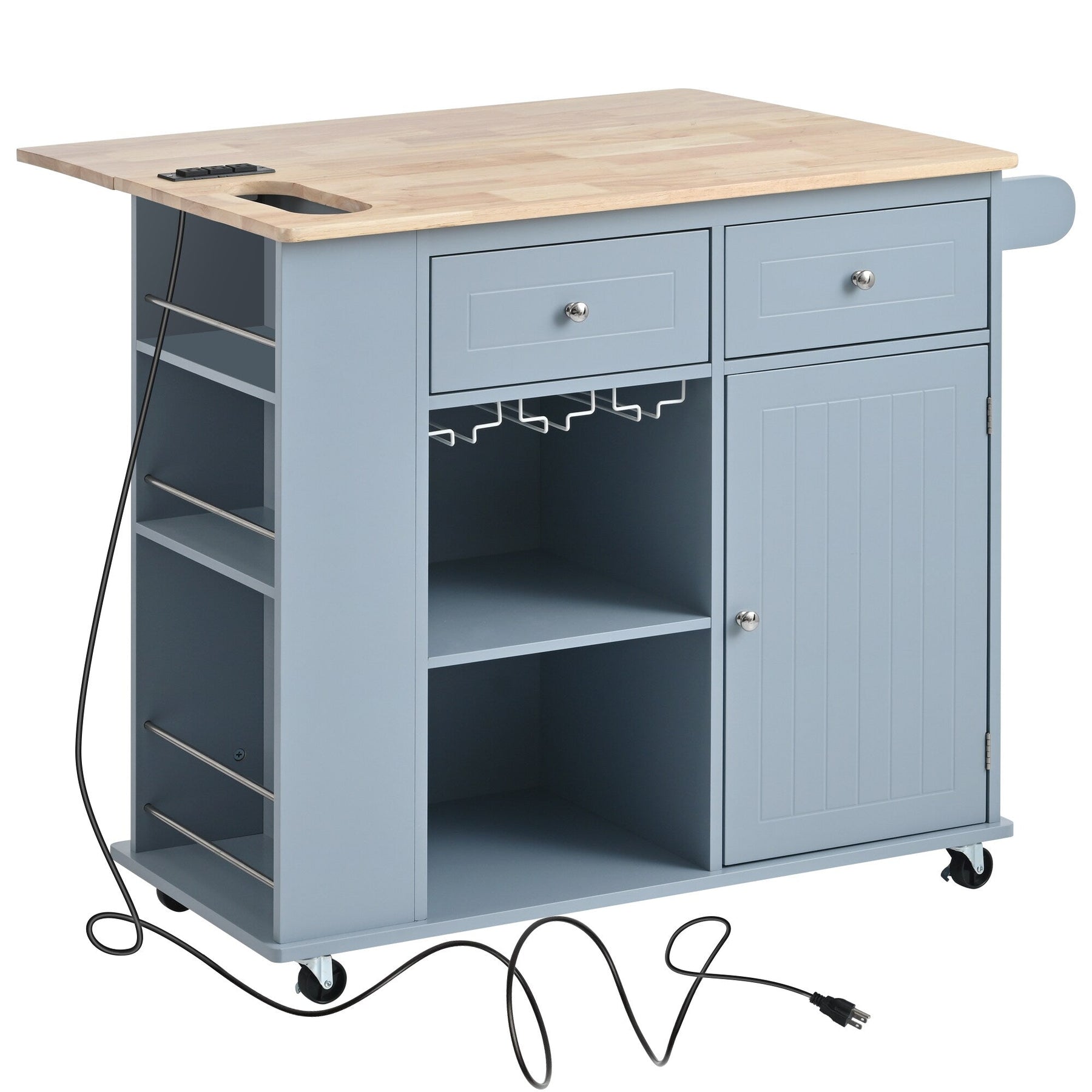 The Runesay Rolling Kitchen Island enhances your kitchen space with its striking blue MDF base and durable MDF wood top. Designed for functionality and style, this island offers generous storage, a convenient power outlet, and a drop-leaf feature to provide extra workspace when needed. Perfect for those who need a versatile culinary companion.