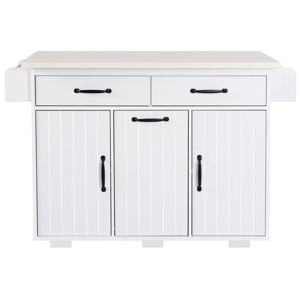 Upgrade your kitchen's functionality and style with the Runesay Rolling Kitchen Island. This mobile workspace features a robust MDF wood top and spacious storage, complete with a convenient drop leaf for extra prepping space when you need it most. Designed for versatility, it includes multiple drawers, cabinets, and space-efficient design elements like towel and spice racks.