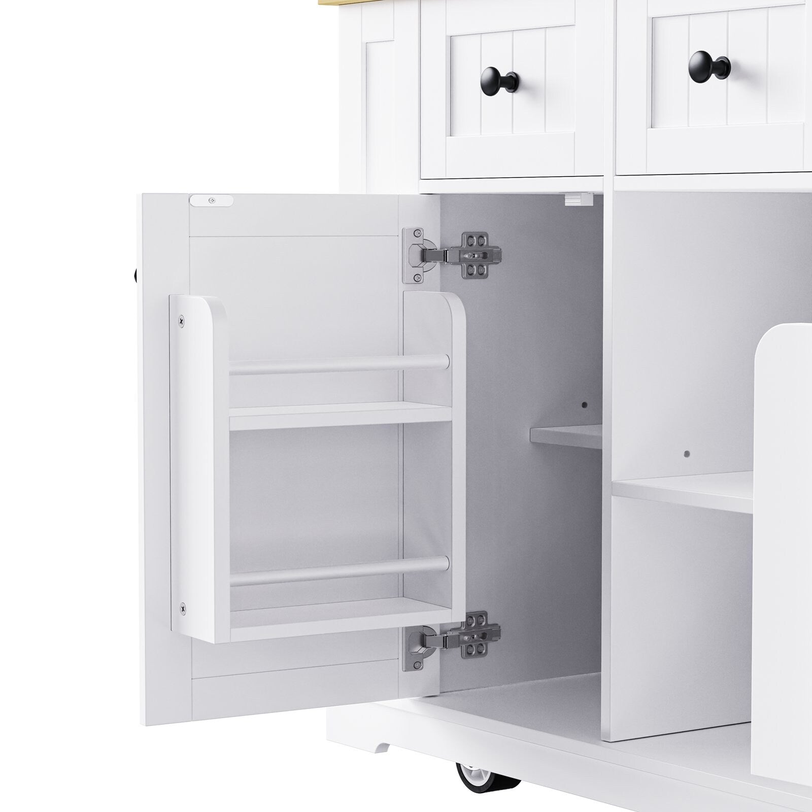 Runesay White Mdf Base with Mdf Wood Top Rolling Kitchen Island (29.52-in x 53.14-in x 36.4-in)