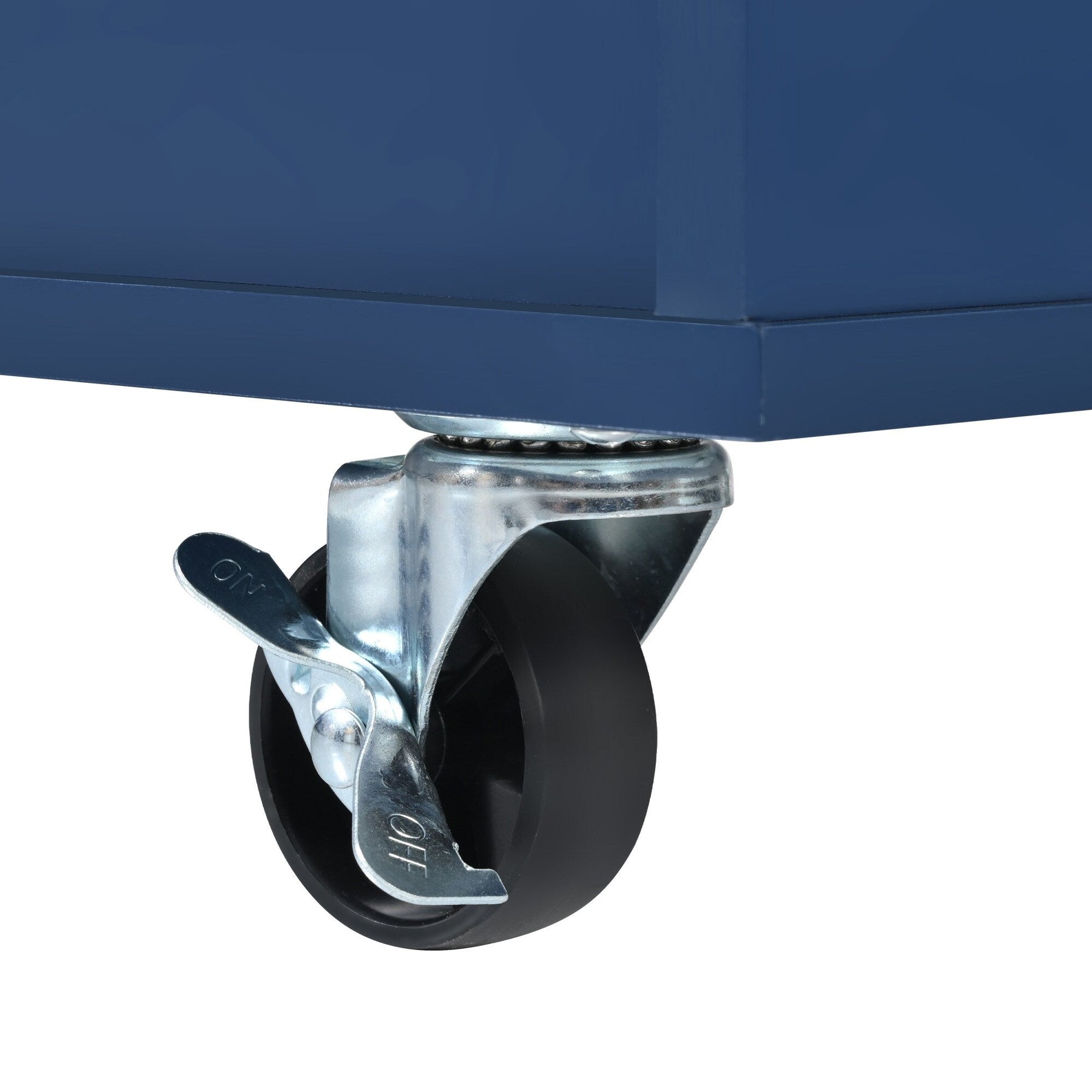 SINOFURN Blue Mdf Base with Mdf Wood Top Rolling Kitchen Island (27.6-in x 53.2-in x 36.3-in)