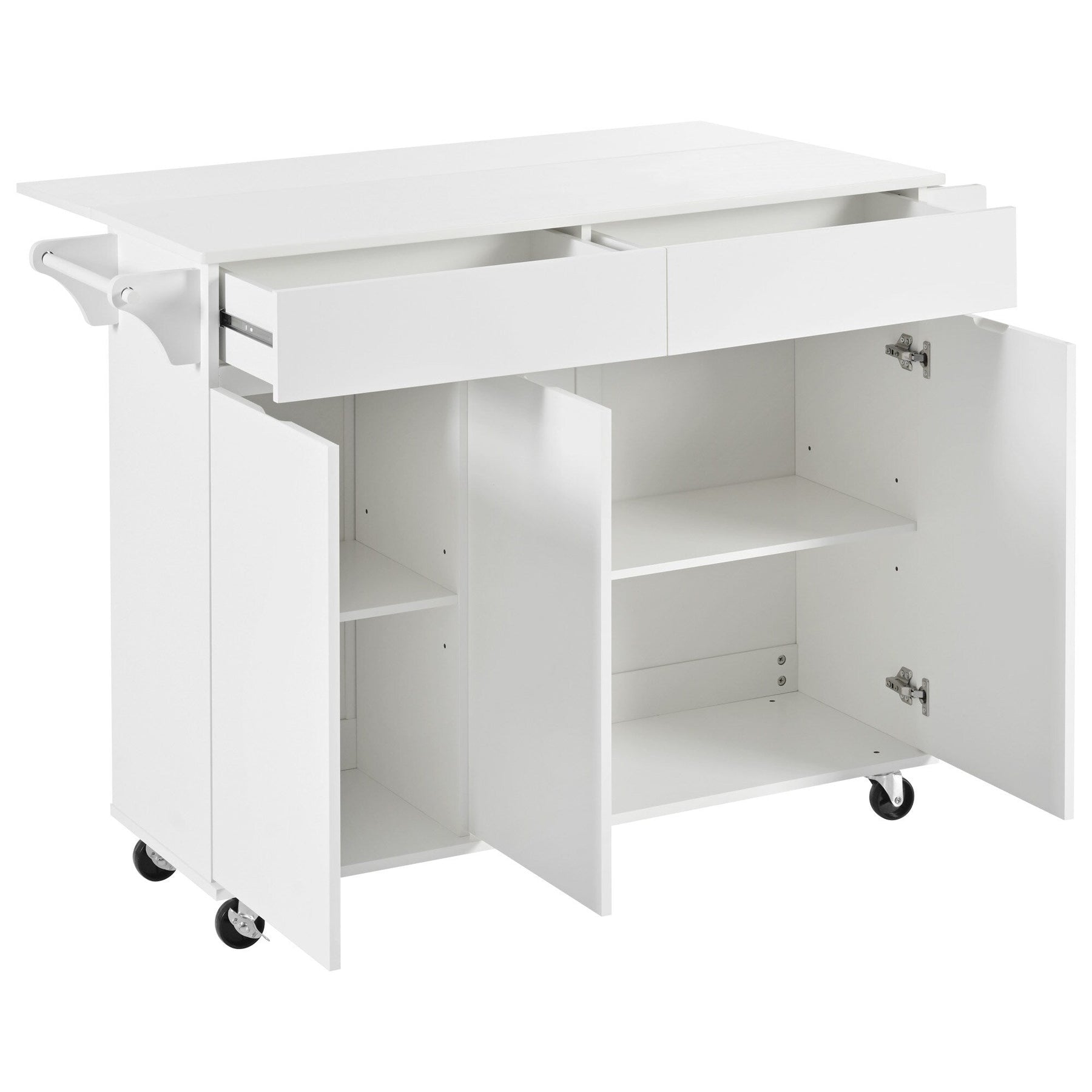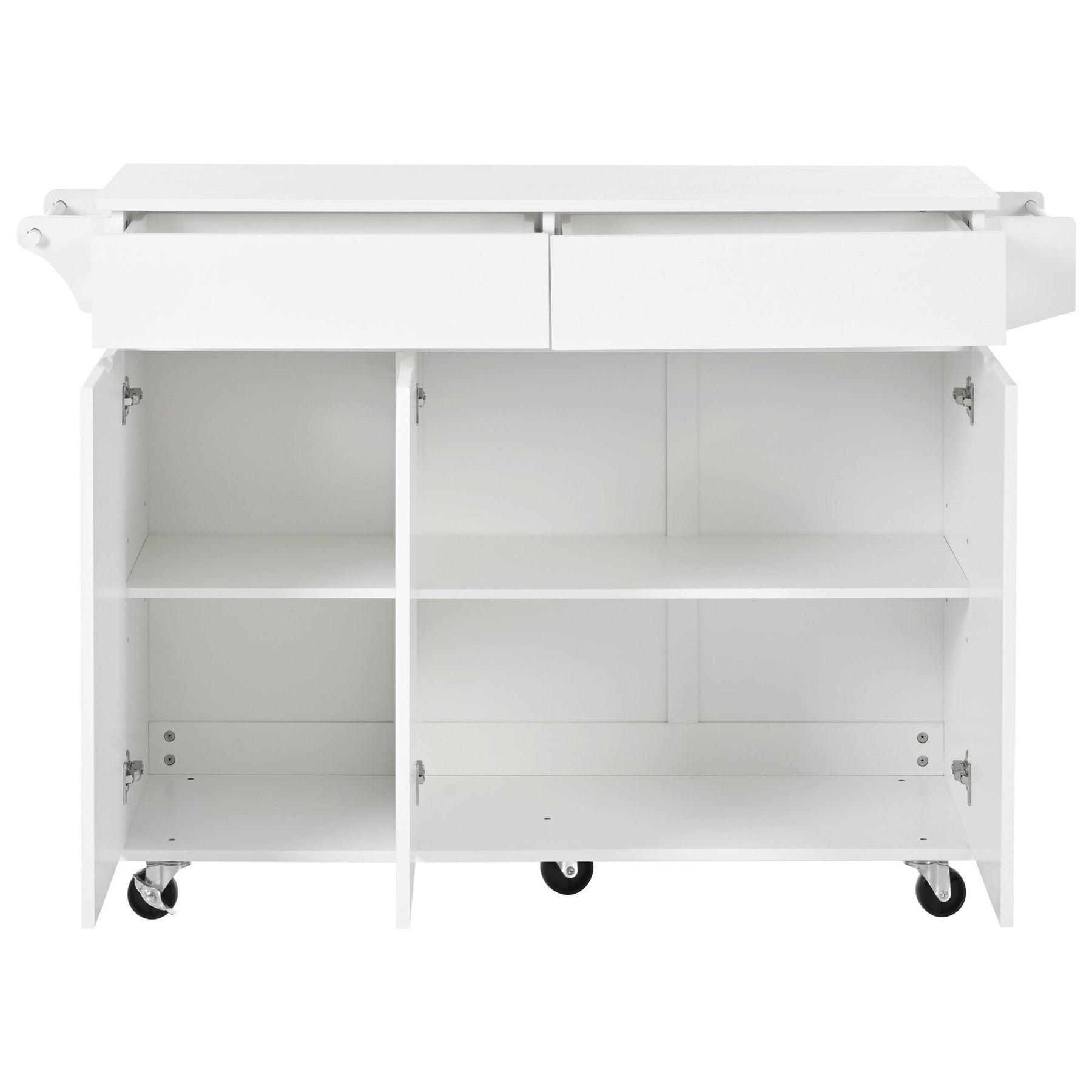 SINOFURN White Mdf Base with Mdf Wood Top Rolling Kitchen Island (27.6-in x 53.2-in x 36.3-in)