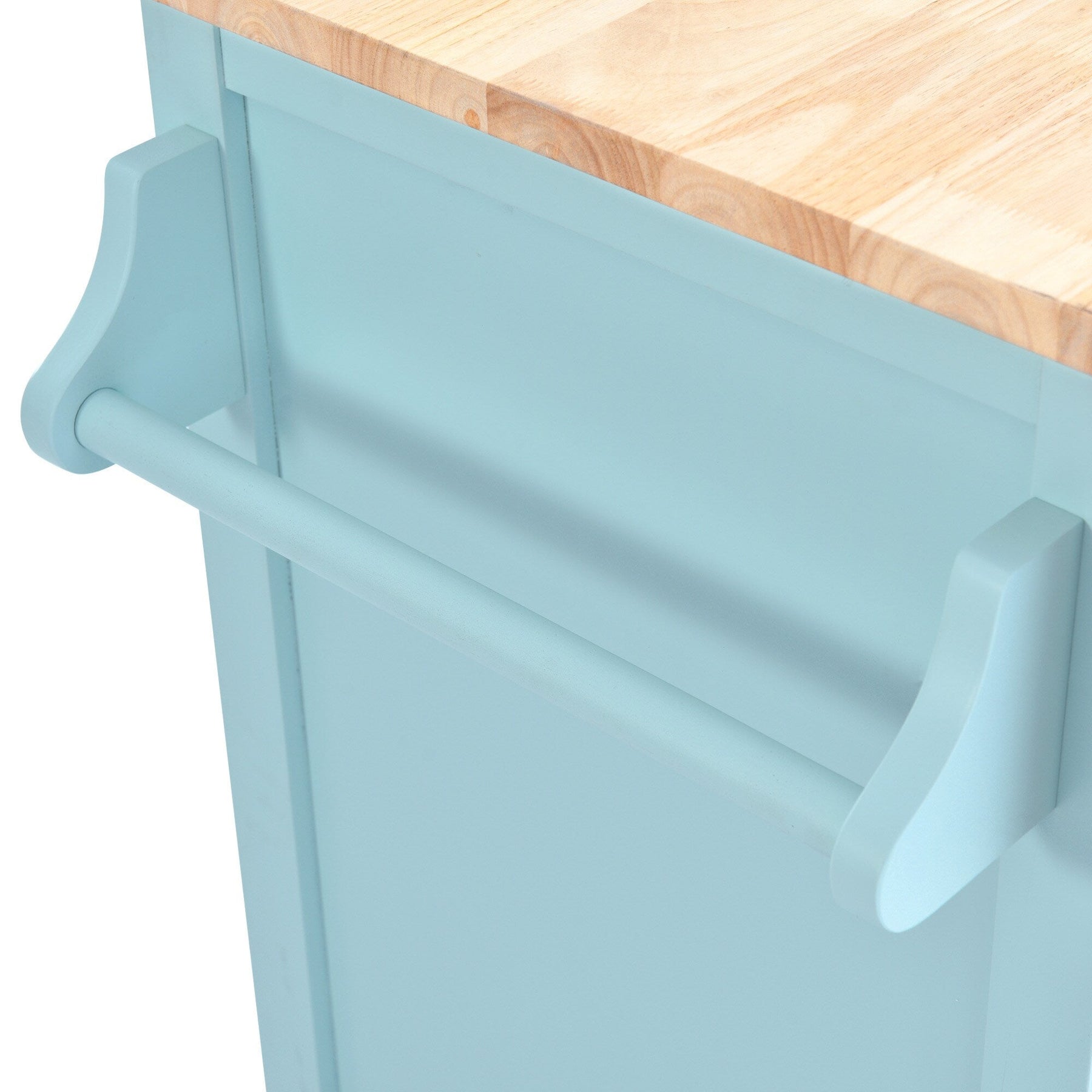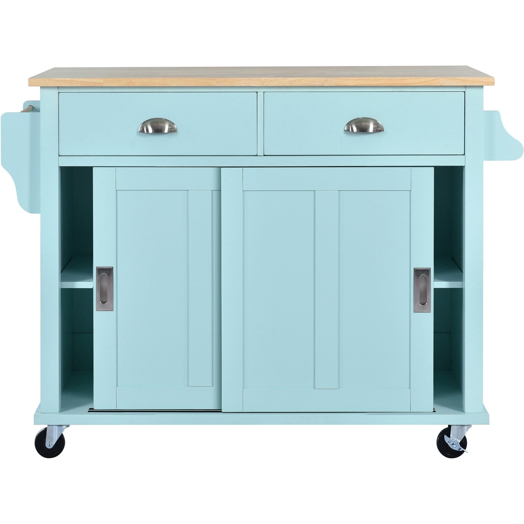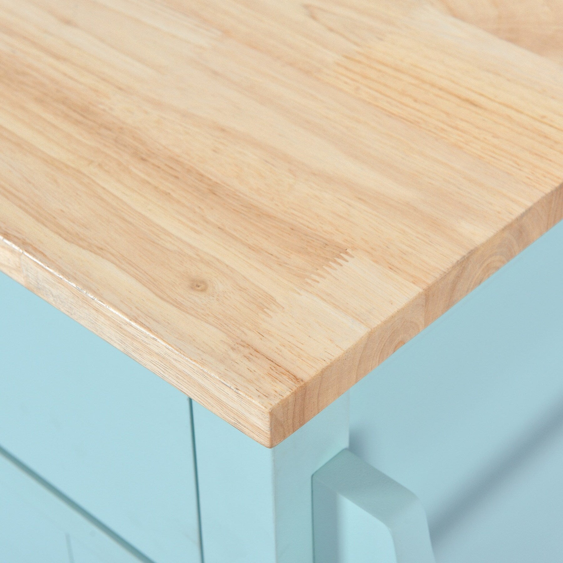 Xspracer Green Mdf Base with Wood Top Rolling Kitchen Island (21-in x 52-in x 37-in)