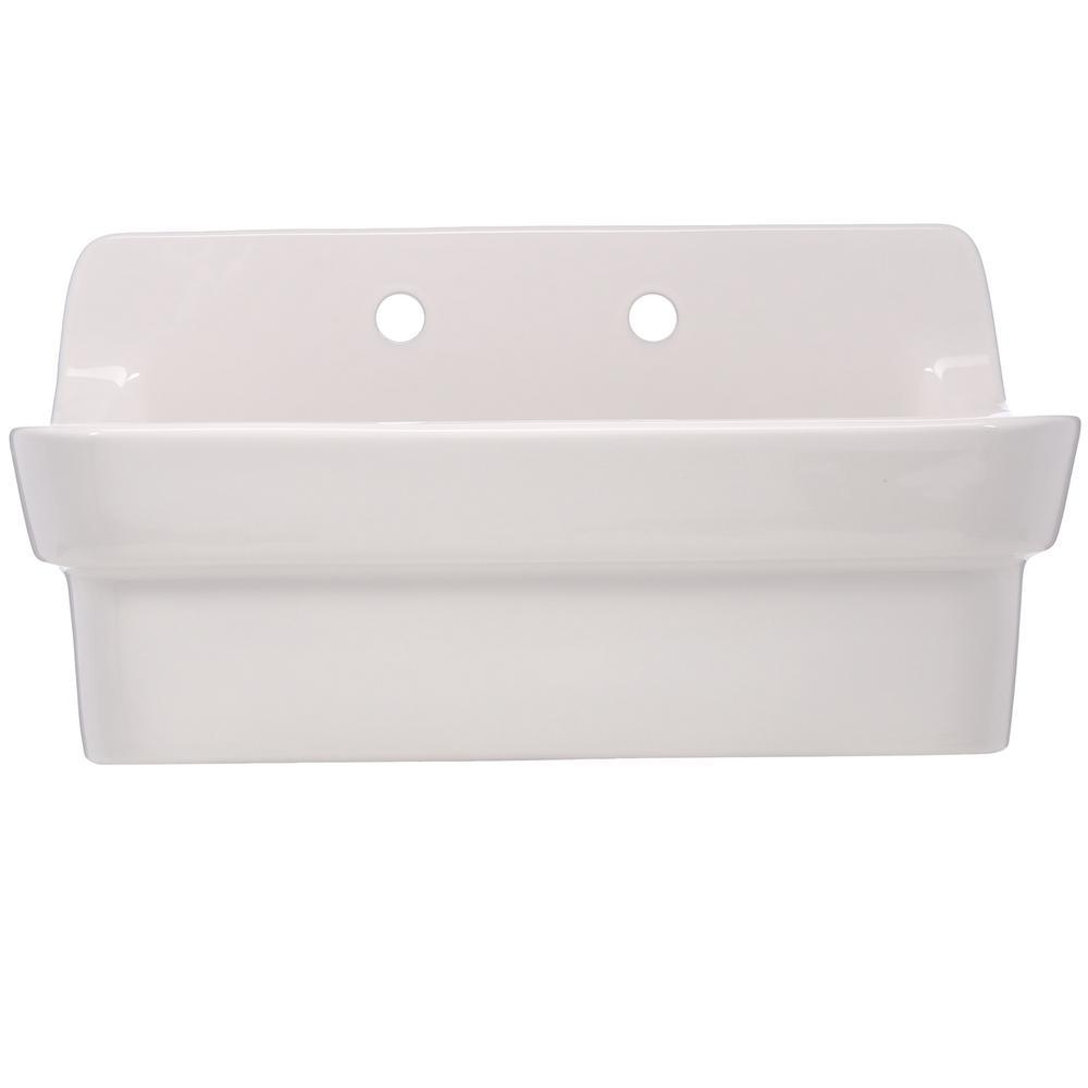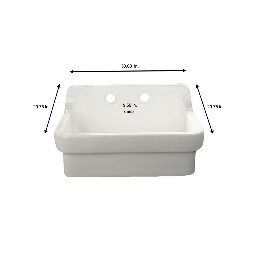 Wall Mount Vitreous China 30 in. 2-Hole Single Bowl Kitchen Sink Kit in White