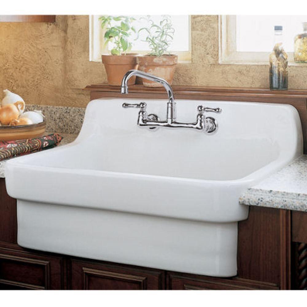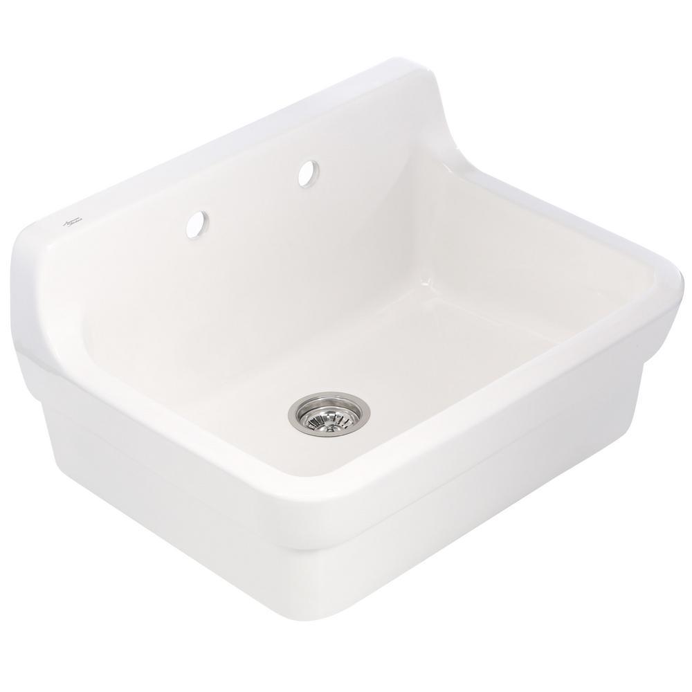 A most rarified rustic design. The Country Base-Mounted Vitreous China 30 in. 2-Hole Single Bowl Kitchen Sink in White is be ideal for casual kitchens with rustic décor. Features include an oversized bowl for stacking dishes and cookware, durable vitreous china construction, pre-drilled faucet holes on 8 in. centers for a dramatic wall-mounted sink faucet and an integral front apron. American Standard kitchen sinks are made with reliable material that seemlessly coordinates with other American Standard faucets, fixtures and accessories.