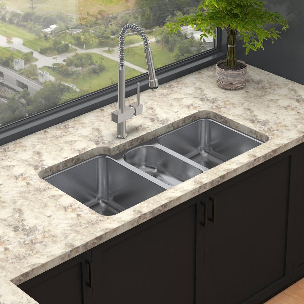 Lustertone Undermount Stainless Steel 40 in. Triple Bowl Kitchen Sink
