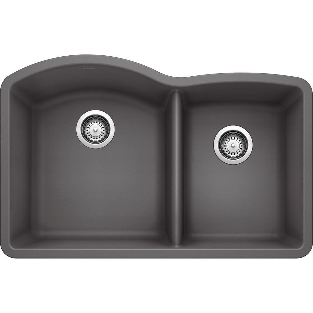 DIAMOND Undermount Granite Composite 32 in. 60/40 Double Bowl Kitchen Sink in Anthracite