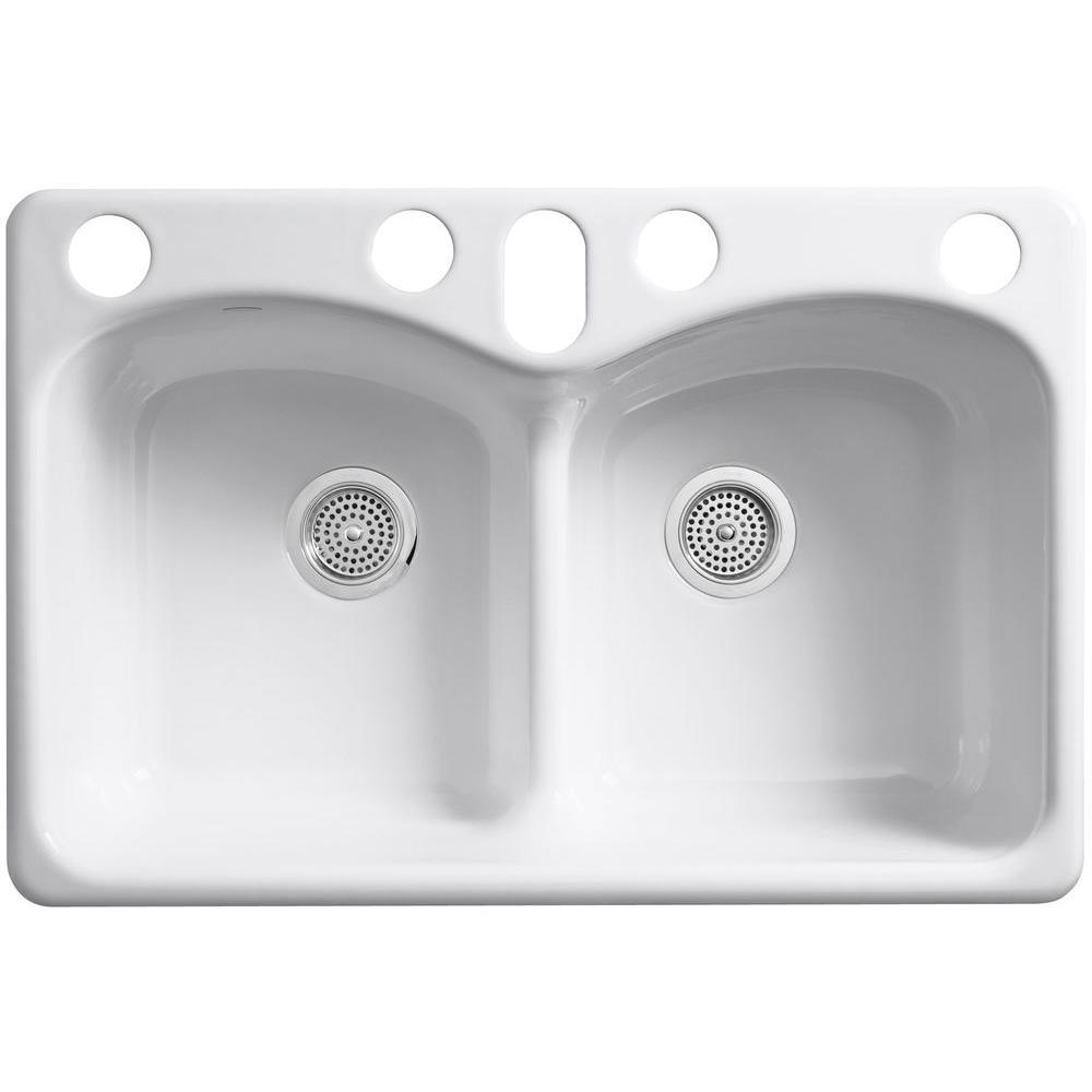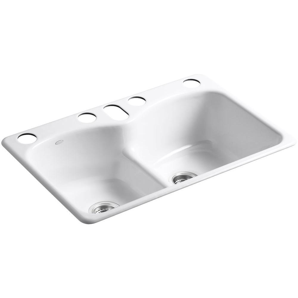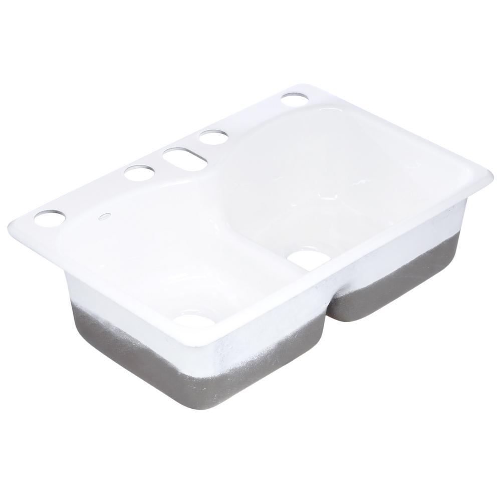 Langlade Smart Divide Undermount Cast Iron 33 in. 6-Hole Double Bowl Kitchen Sink in White