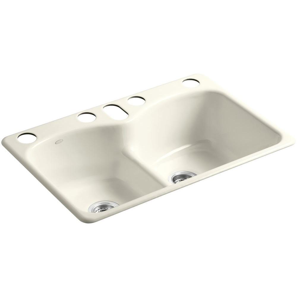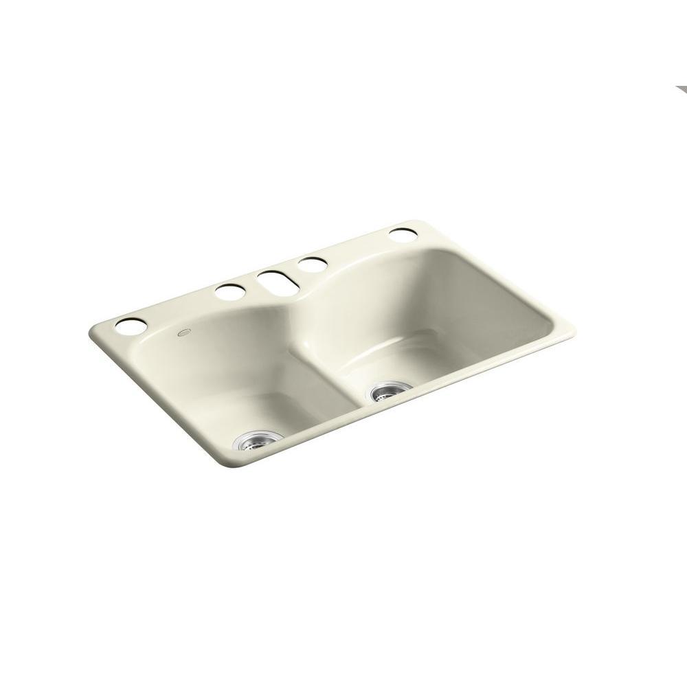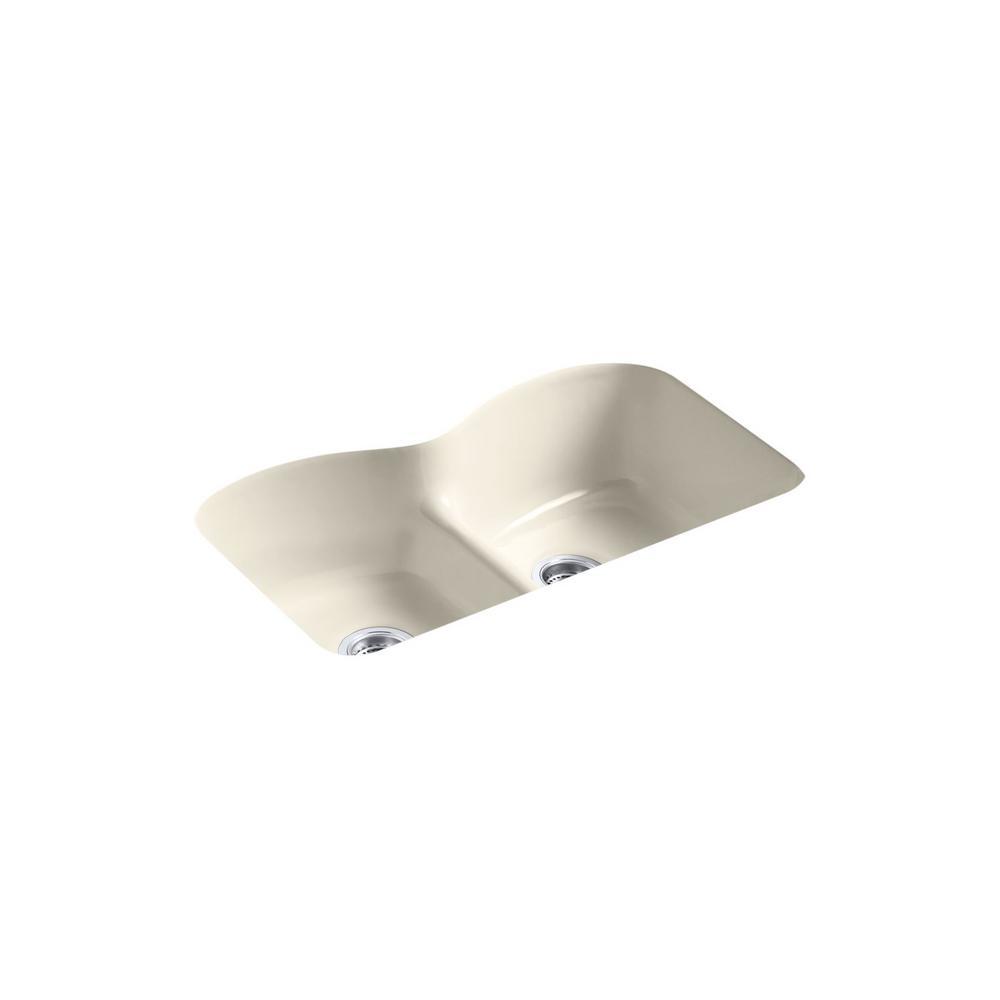 Bring refined style to your kitchen with the beautifully stylized curves of the Langlade sink. A low barrier divides the two compartments, making it easy to wash and rinse large items while still keeping the two basins separate. Crafted from enameled Cast-Iron, this sink resists chipping, cracking, or burning for years of beauty and reliable performance.