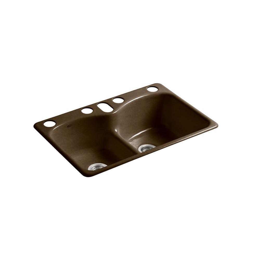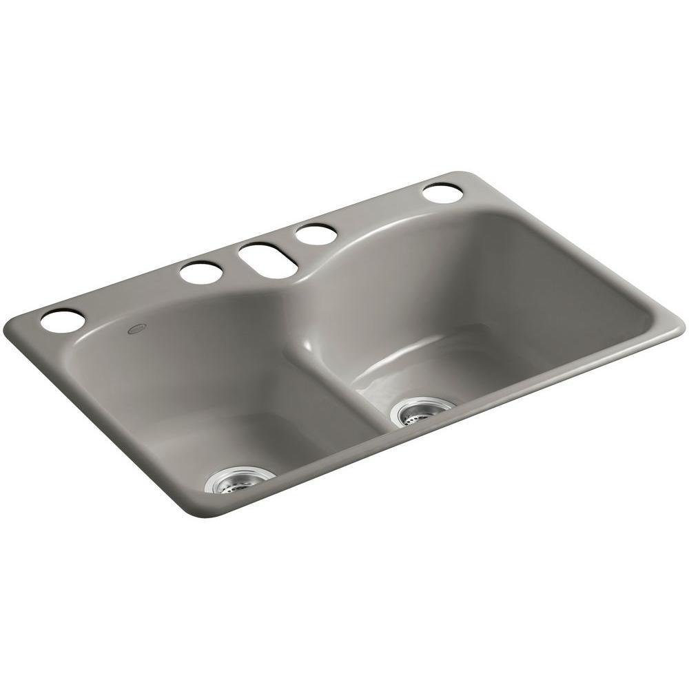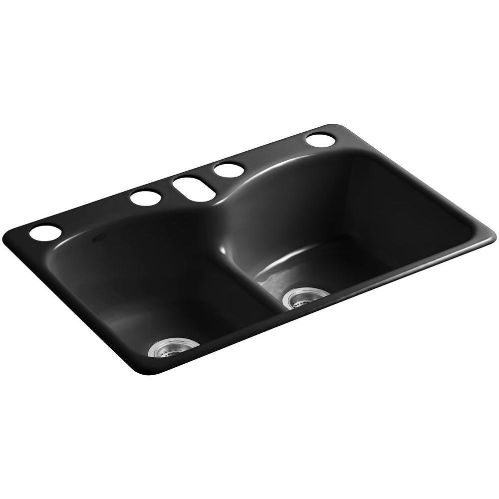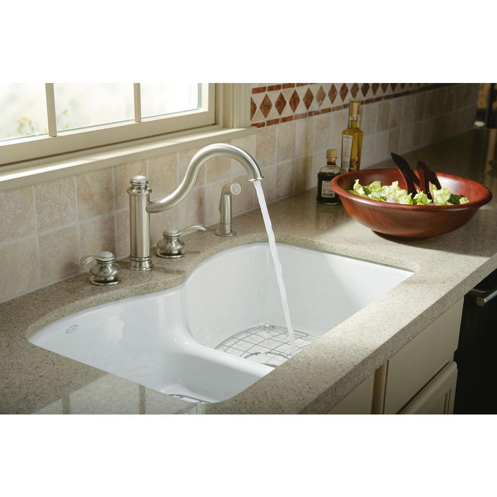 Bring refined style to your kitchen with the beautifully stylized curves of the Langlade sink. A low barrier divides the two compartments, making it easy to wash and rinse large items while still keeping the two basins separate. Crafted from enameled Cast-Iron, this sink resists chipping, cracking, or burning for years of beauty and reliable performance.
