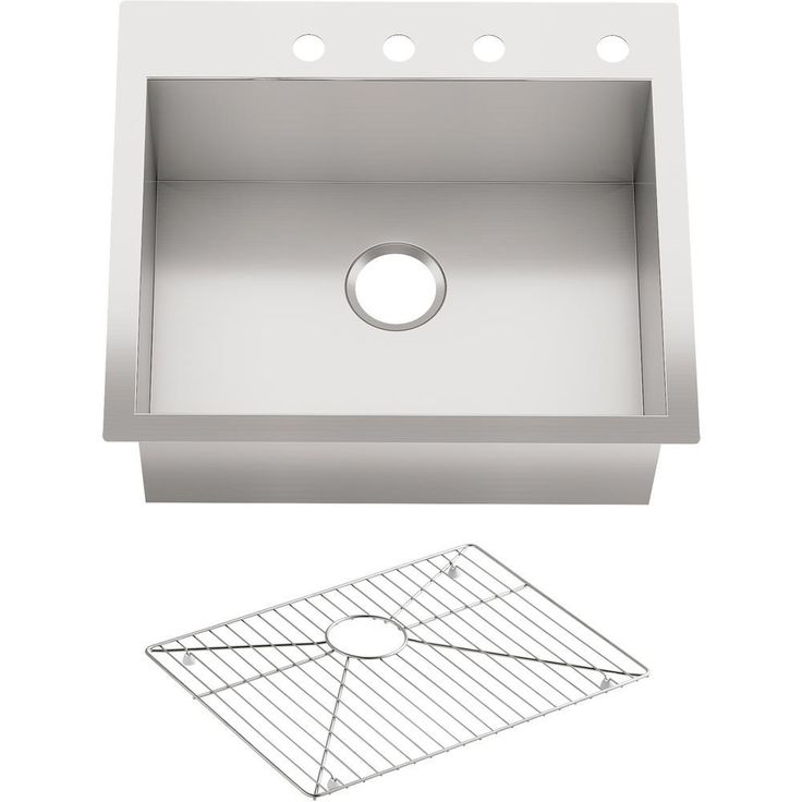 Vault Dual Mount Stainless Steel 25 in. 4-Hole Single Bowl Kitchen Sink Kit with Basin Rack