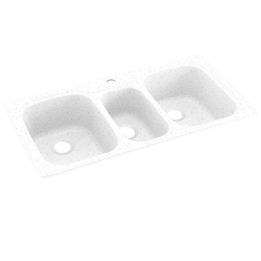 Swan Drop-In/Undermount Solid Surface 44 in. Triple Bowl Kitchen Sink, 1-Hole, Arctic Granite