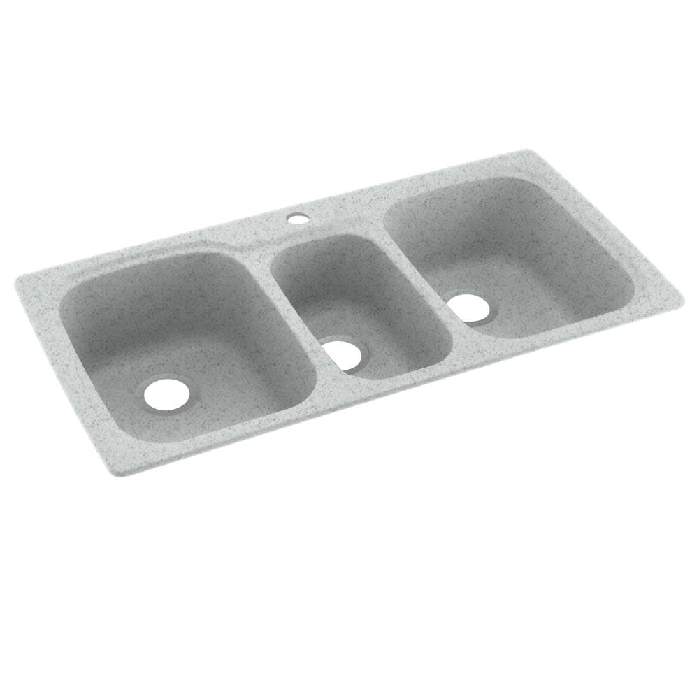 A durable solid-surface triple-bowl sink that mounts as drop-in or undermount. Resistant to heat, stains, and scratches, it features a 1-hole deck that accommodates most faucet styles and a practical 40/20/40 bowl layout.