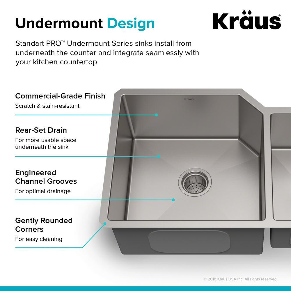 KRAUS kitchen sinks are known for excellent quality and sturdy construction. The Premier Collection sinks are the perfect combination of quality, durability and convenience. Made from durable T-304 stainless steel, this undermount sink can easily stand up to constant use and handle your toughest kitchen tasks. Enjoy the advantage of high-end kitchen sinks with the best-selling Standard PRO Series. This KRAUS sink features a clean contemporary design and wear-resistant finish with a beautiful sheen that complements most kitchen appliances.