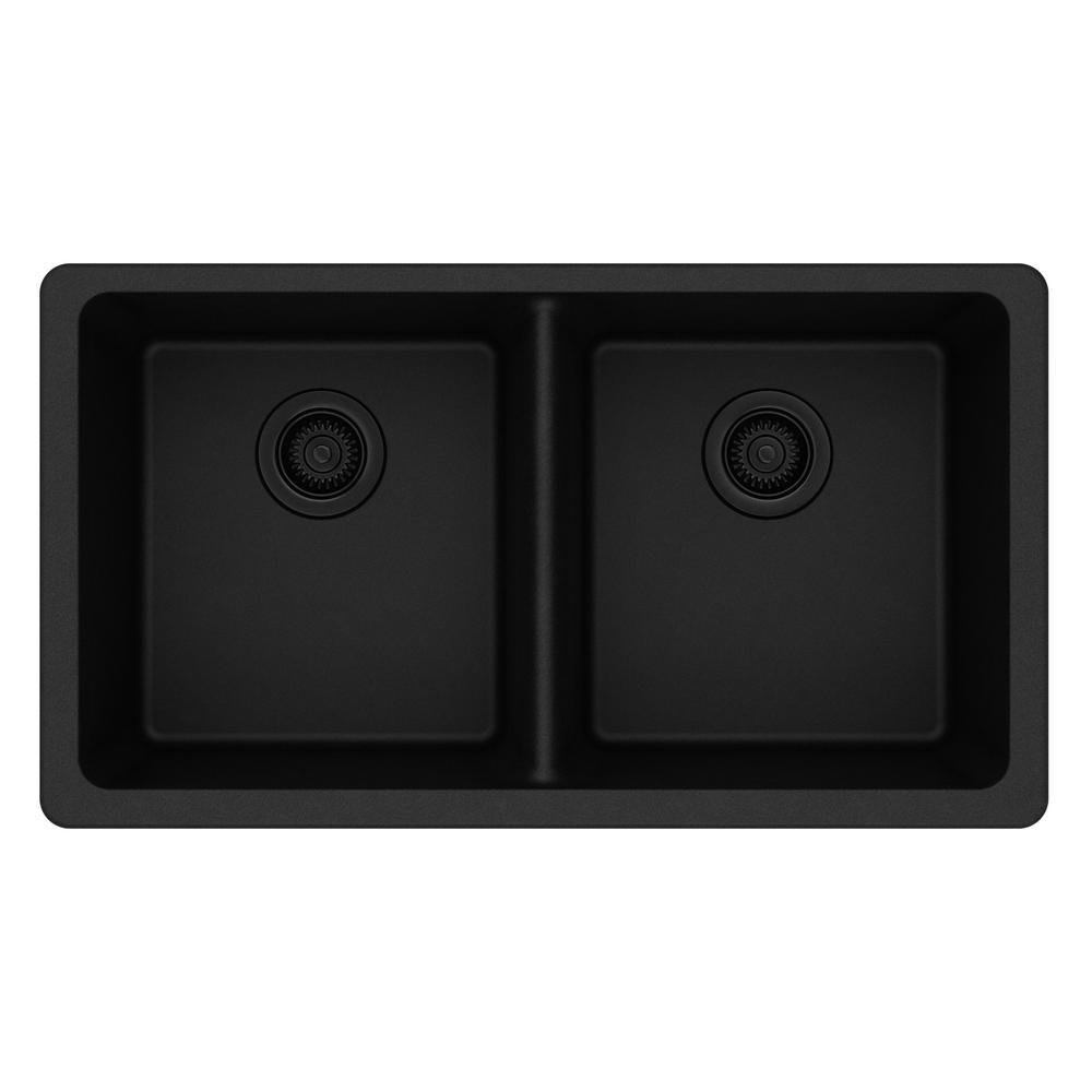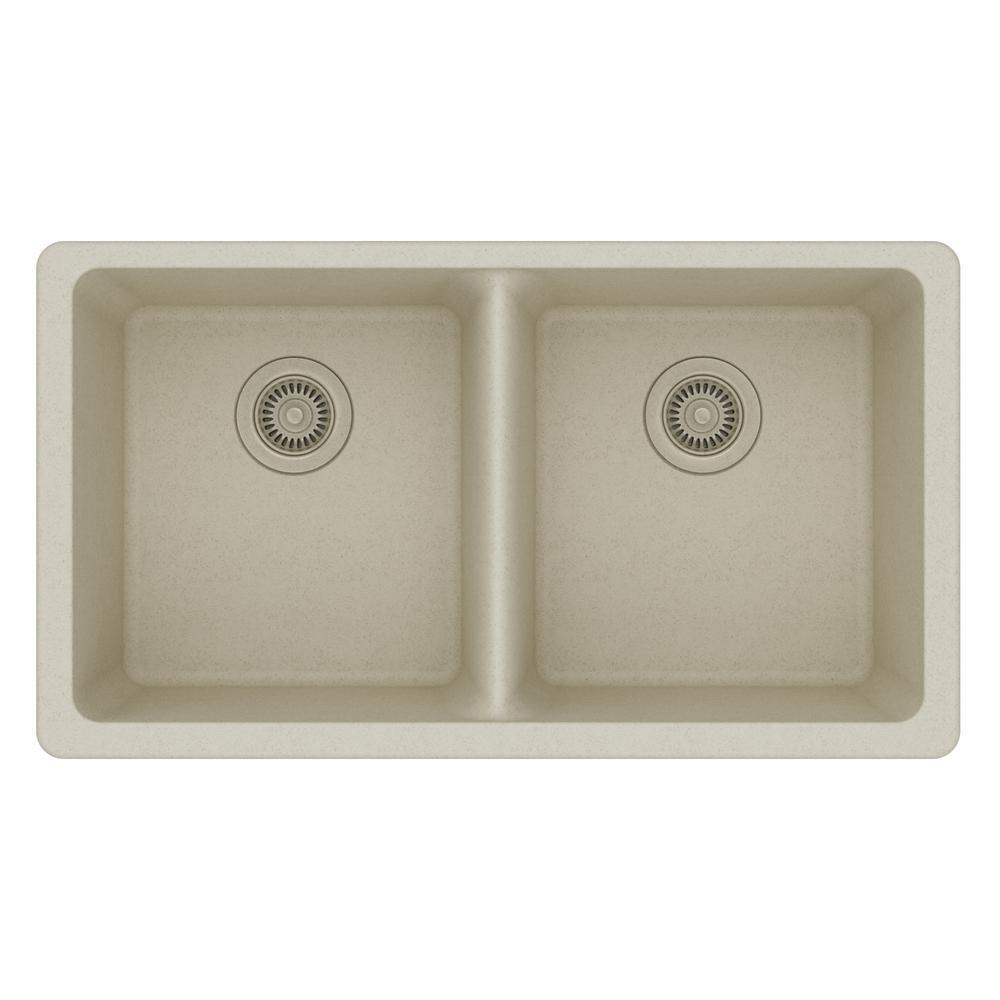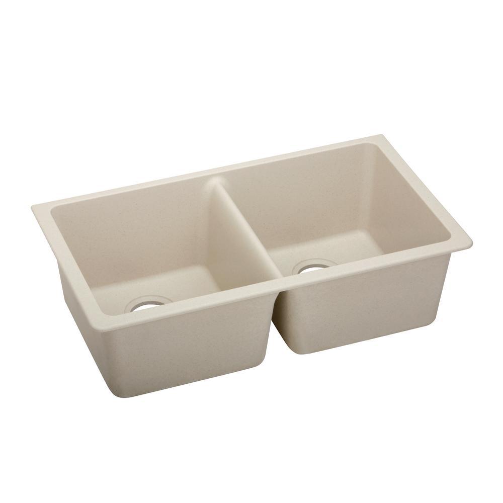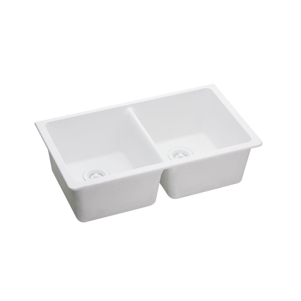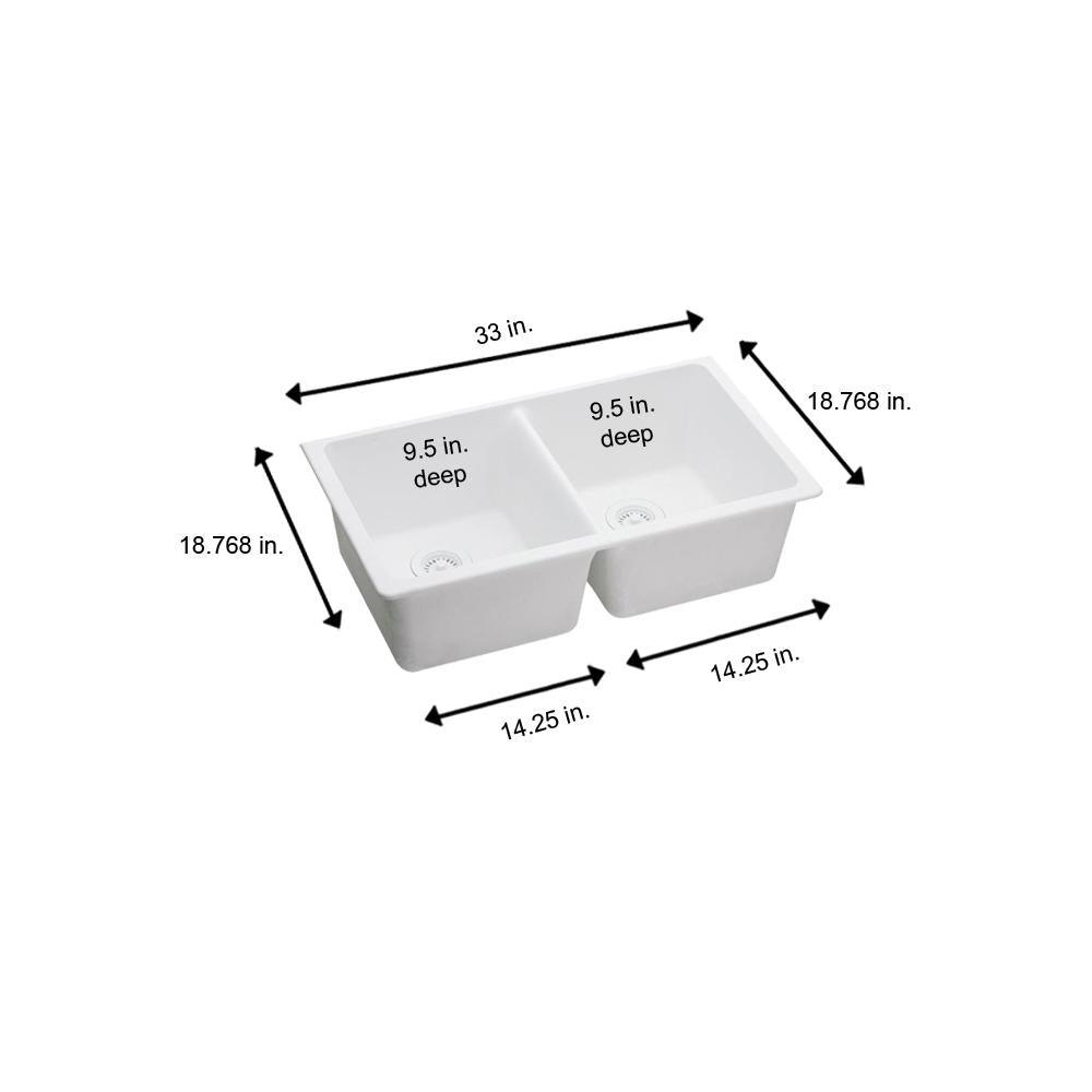Quartz Classic Undermount Composite 33 in. 50/50 Double Bowl Kitchen Sink in White