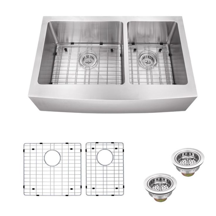 Farmhouse Apron Front Undermount 16-Gauge Stainless Steel 33 in. 60/40 Double Bowl Kitchen Sink with Grids and Drains