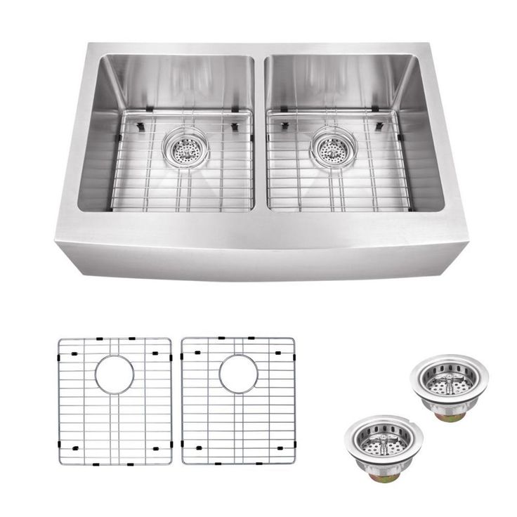 Farmhouse Apron Front Undermount 16-Gauge Stainless Steel 33 in. 50/50 Double Bowl Kitchen Sink with Grid Set and Drains
