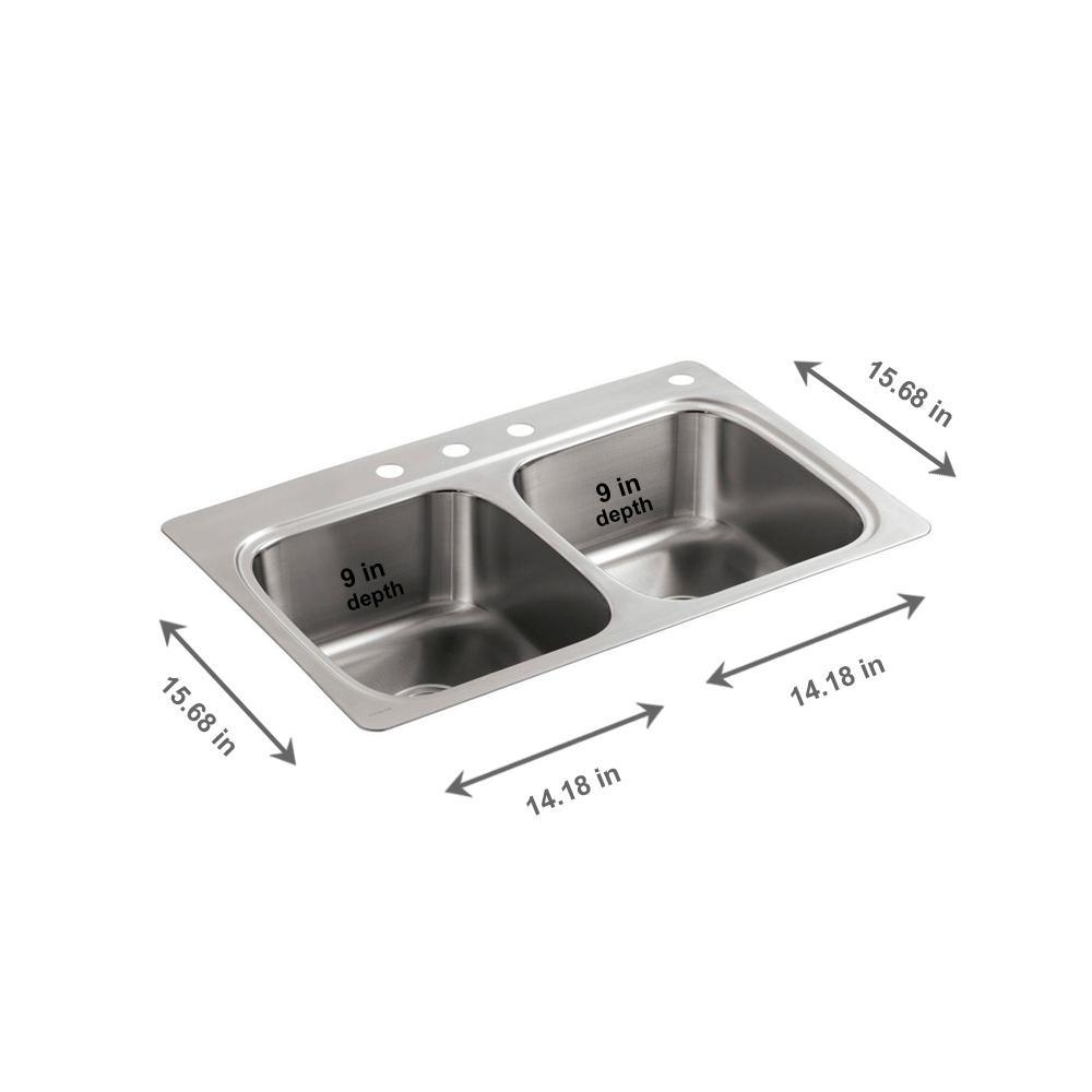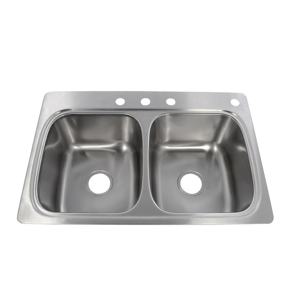 Verse Drop-In Stainless Steel 33 in. 4-Hole Double Bowl Kitchen Sink