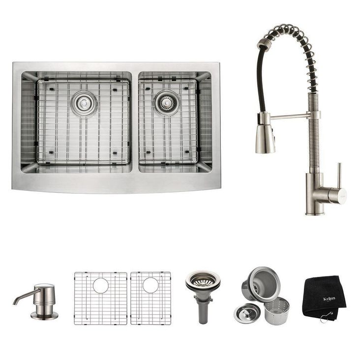 All-in-One Farmhouse Apron Front Stainless Steel 33 in. Double Bowl Kitchen Sink with Faucet in Stainless Steel