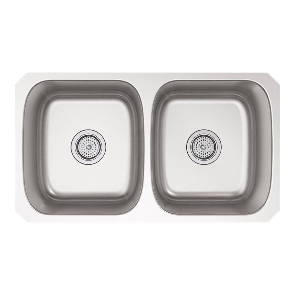 Ballad Undermount Stainless Steel 32 in. Double Bowl Kitchen Sink