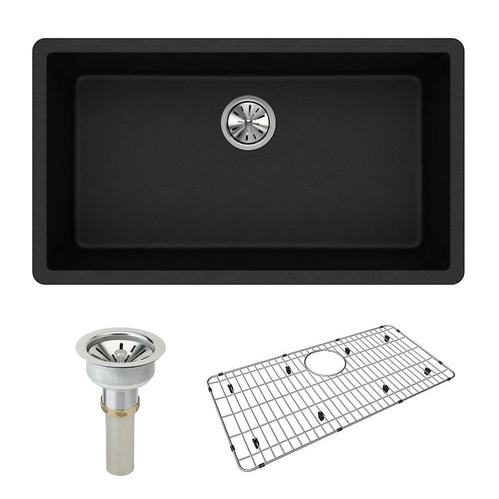Quartz Classic Undermount Composite 33 in. Single Bowl Kitchen Sink in Black