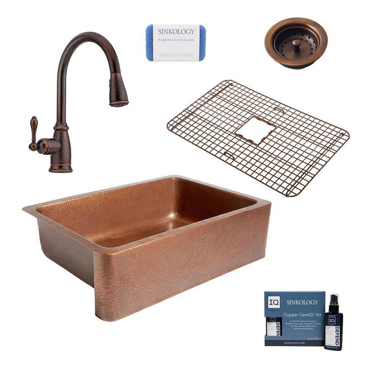 Adams All-In-One Farmhouse Copper 33 in. Single Bowl Kitchen Sink with Pfister Bronze Pull Down Faucet and Drain