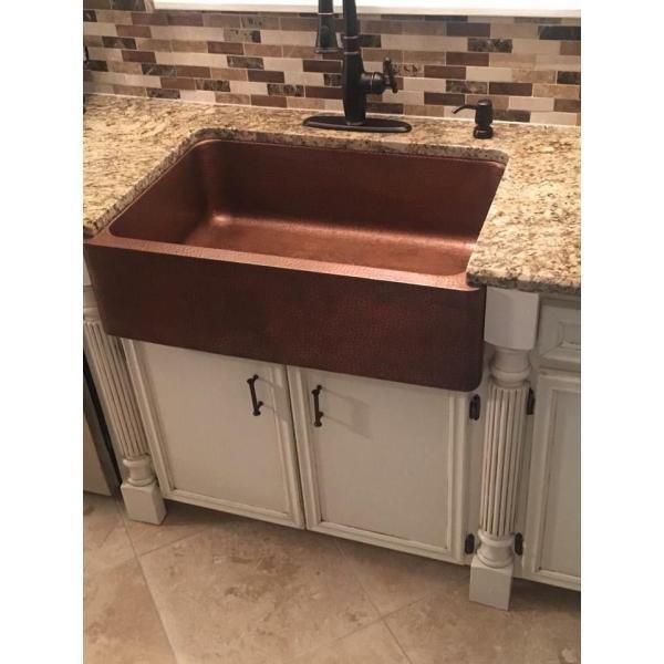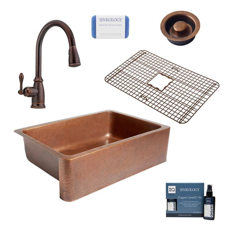 Adams All-in-One Farmhouse Copper 33 in. Single Bowl Kitchen Sink with Pfister Rustic Bronze Faucet and Disposal Drain