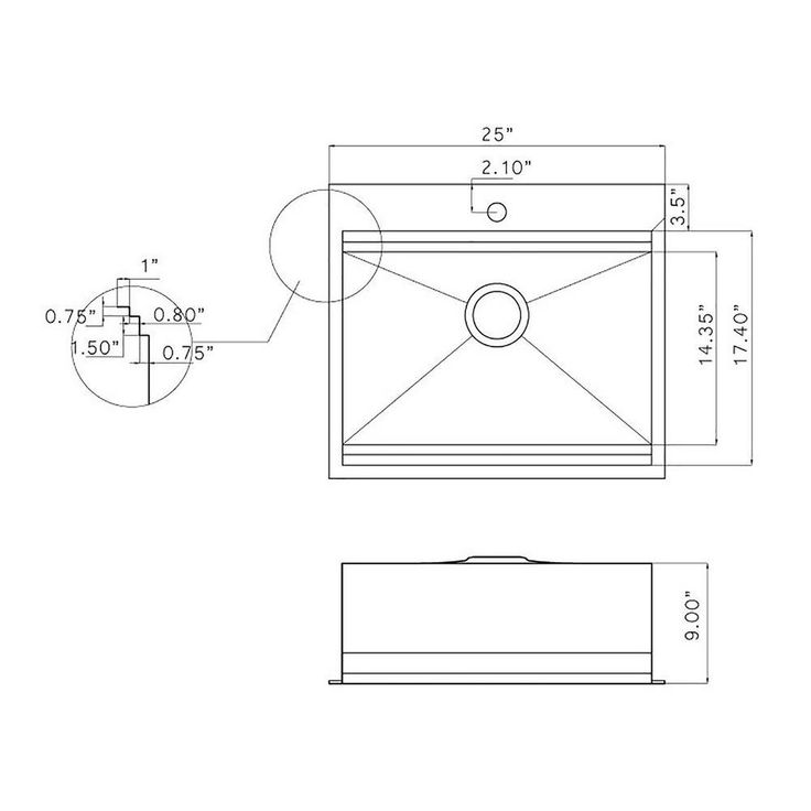 Handcrafted All-in-One Drop-In Stainless Steel 25 in. x 22 in. x 9 in. Single Bowl Kitchen Sink