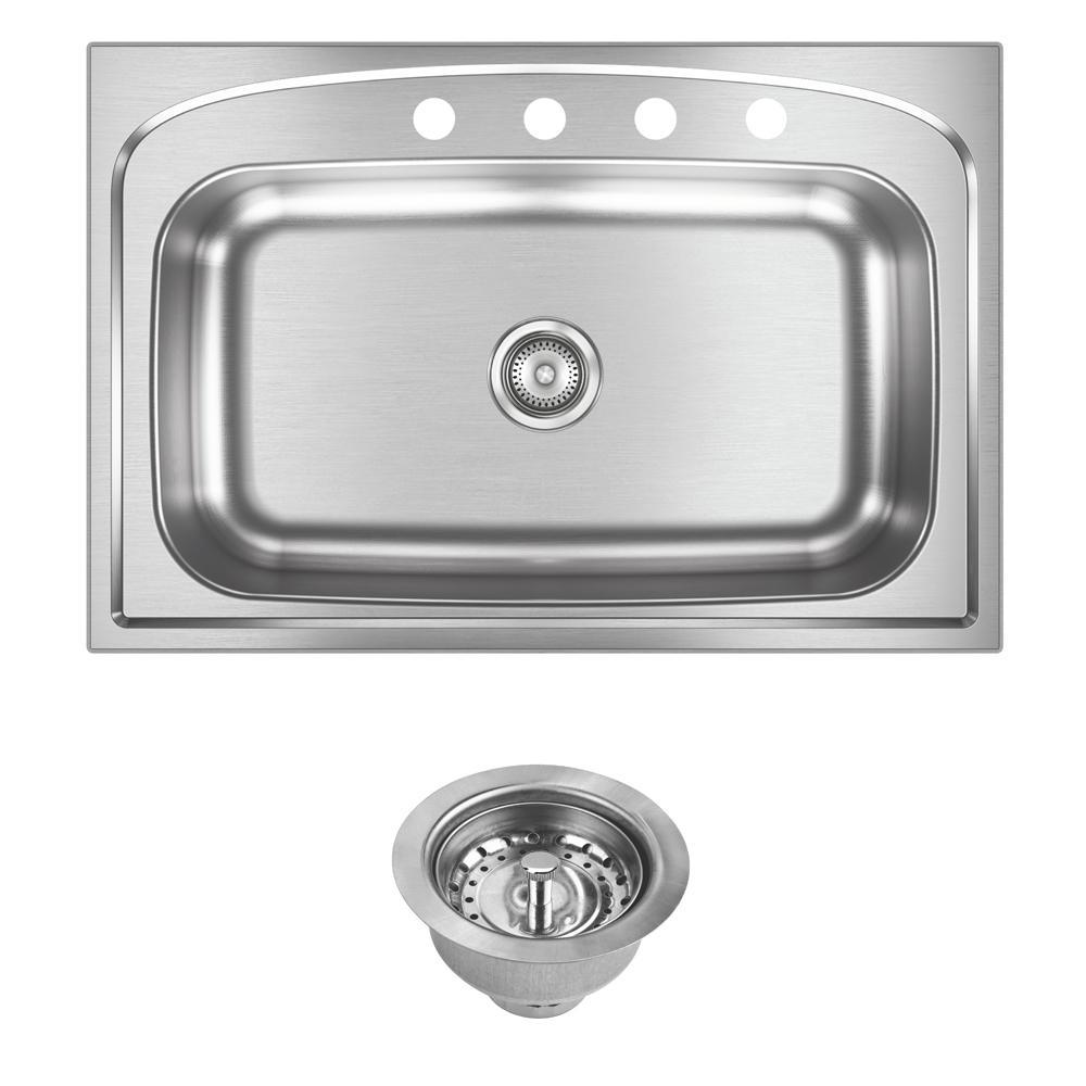 Pergola Drop-In Stainless Steel 33 in. 4-Hole Single Bowl Kitchen Sink