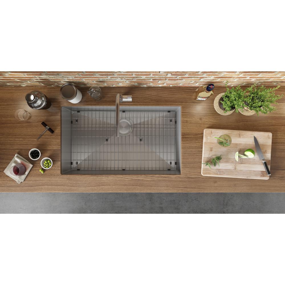 • Includes stainless steel bottom rinse grids that protect the sink from scratches and acts as a drying rack for pots and pans