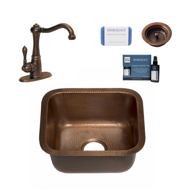 Sisley Pro All-in-One Undermount 18.5 in. Single Bowl Copper Bar Prep Kitchen Sink with Pfister Faucet and Drain
