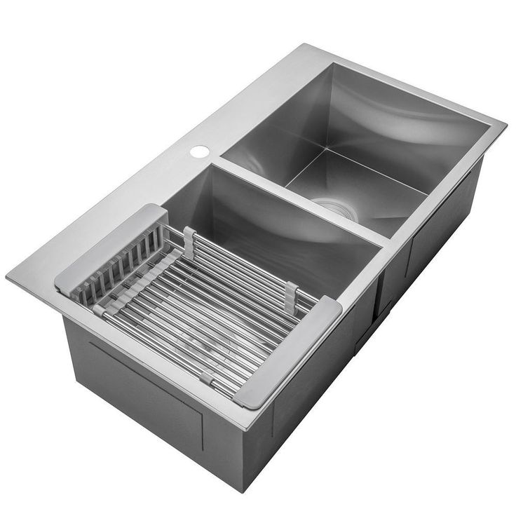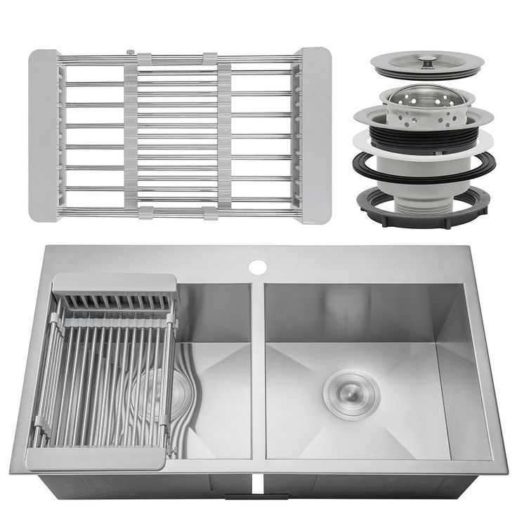 Drop-in Stainless Steel 33 in. x 22 in. 1-Hole 50/50 Double Bowl Kitchen Sink with Drying Rack