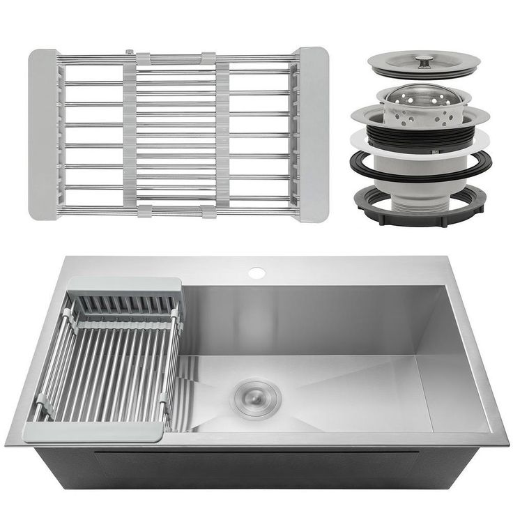 Handmade Drop-in Stainless Steel 33 in. x 22 in. Single Bowl Kitchen Sink with Drying Rack