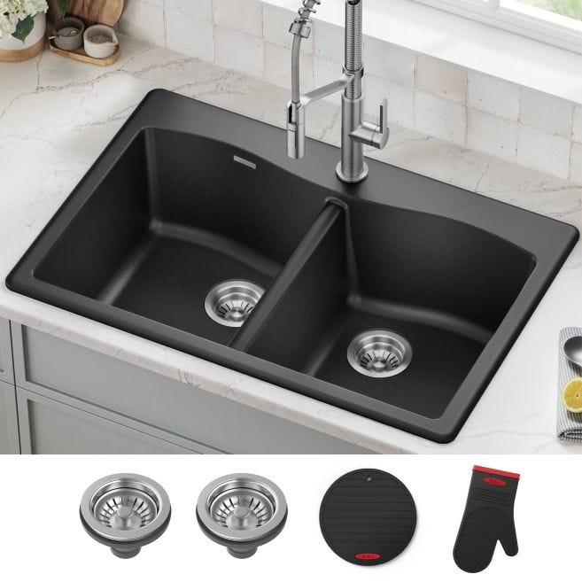 Regular price $279.95Forteza 33" Black Granite Composite Double Bowl Kitchen Sink