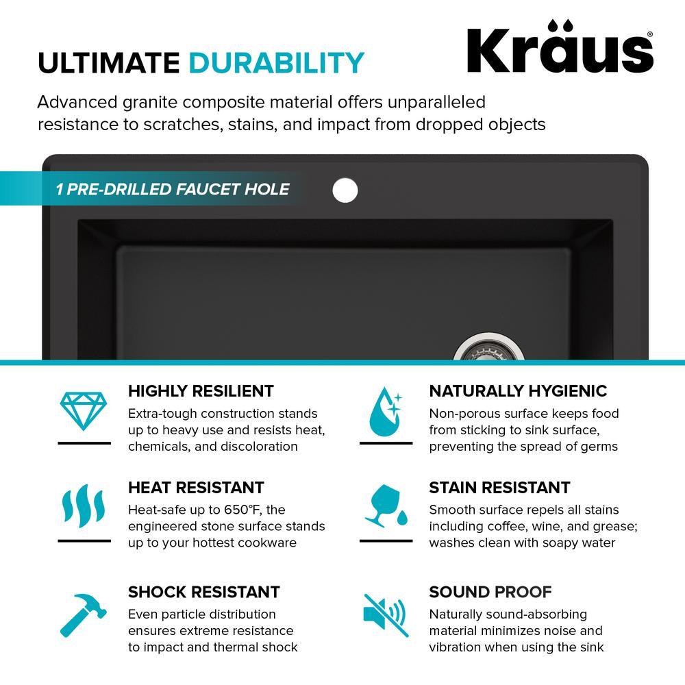• Naturally sound-absorbing: thick stone-like material absorbs vibration and minimizes noise when sink is in use