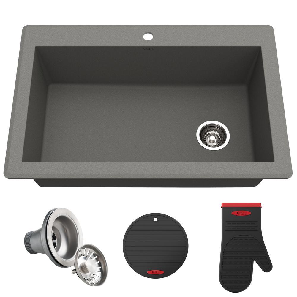 • Kit includes: Forteza series sink, 3.5 drain assembly with strainer, silicone mitt and trivet, mounting hardware, cut-out template, installation and care instructions