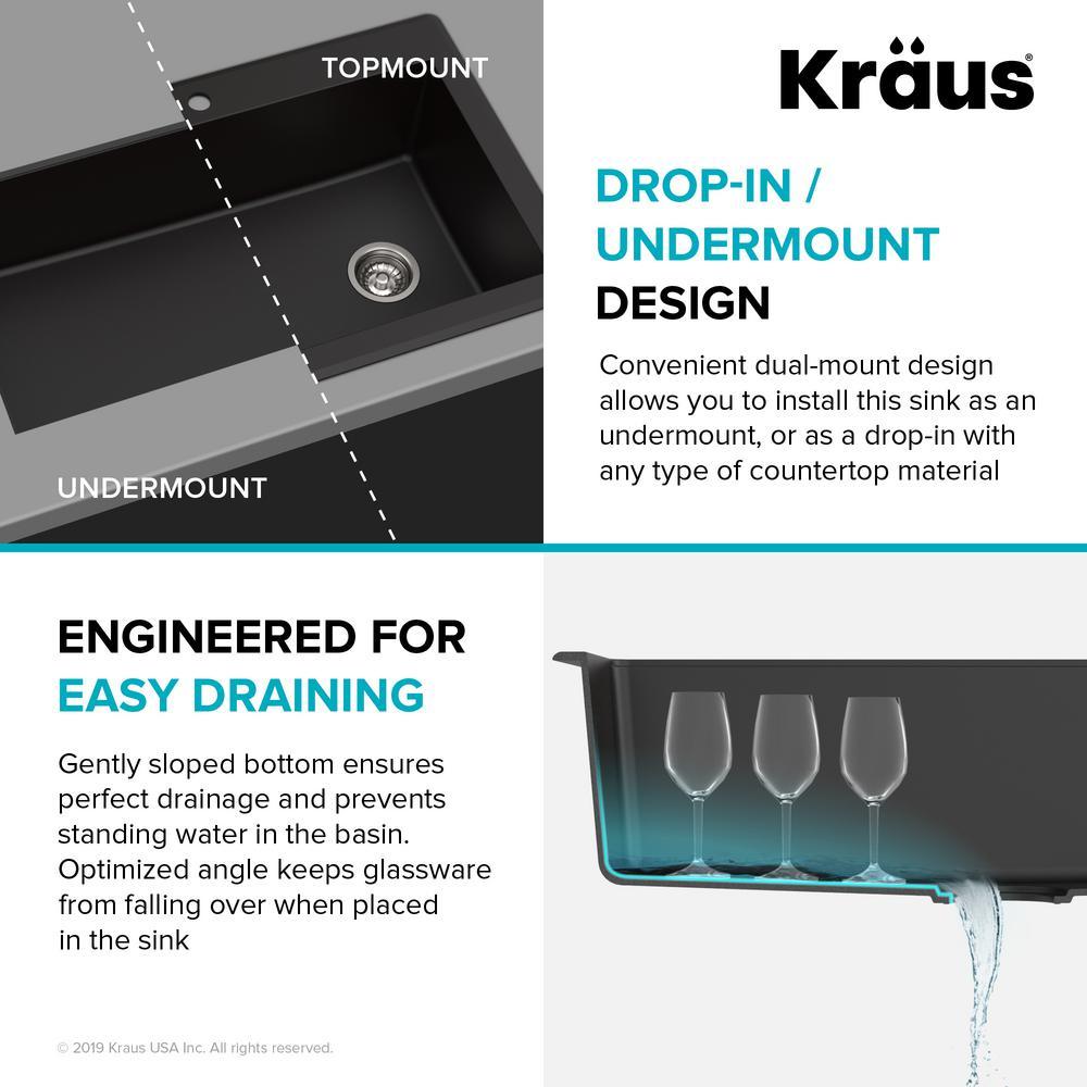 • Dualmount/drop in kitchen sink: offers installation flexibility, with a convenient choice of undermount or drop-in installation