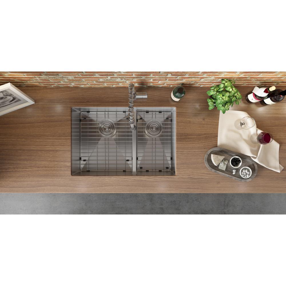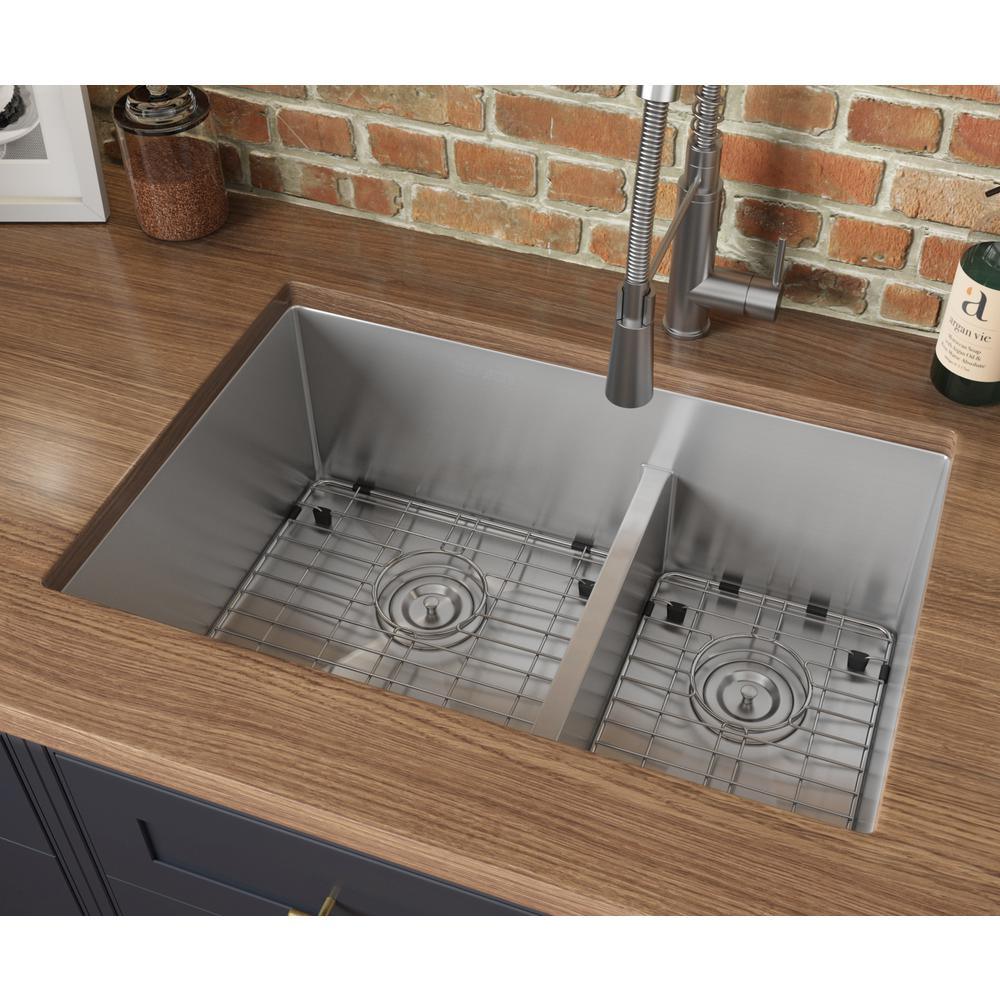 • Includes stainless steel bottom rinse grids that protect the sink from scratches and acts as a drying rack for pots and pans