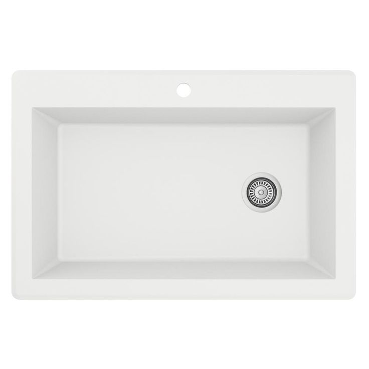 Drop-In Quartz Composite 33 in. 1-Hole Single Bowl Kitchen Sink in White